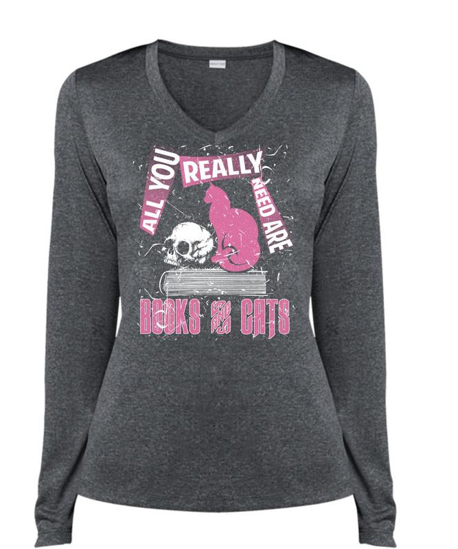 All You Really Need Are Books And Cats T Shirt, My Favorite T Shirt, Cool Shirt (Ladies LS Heather V-Neck)