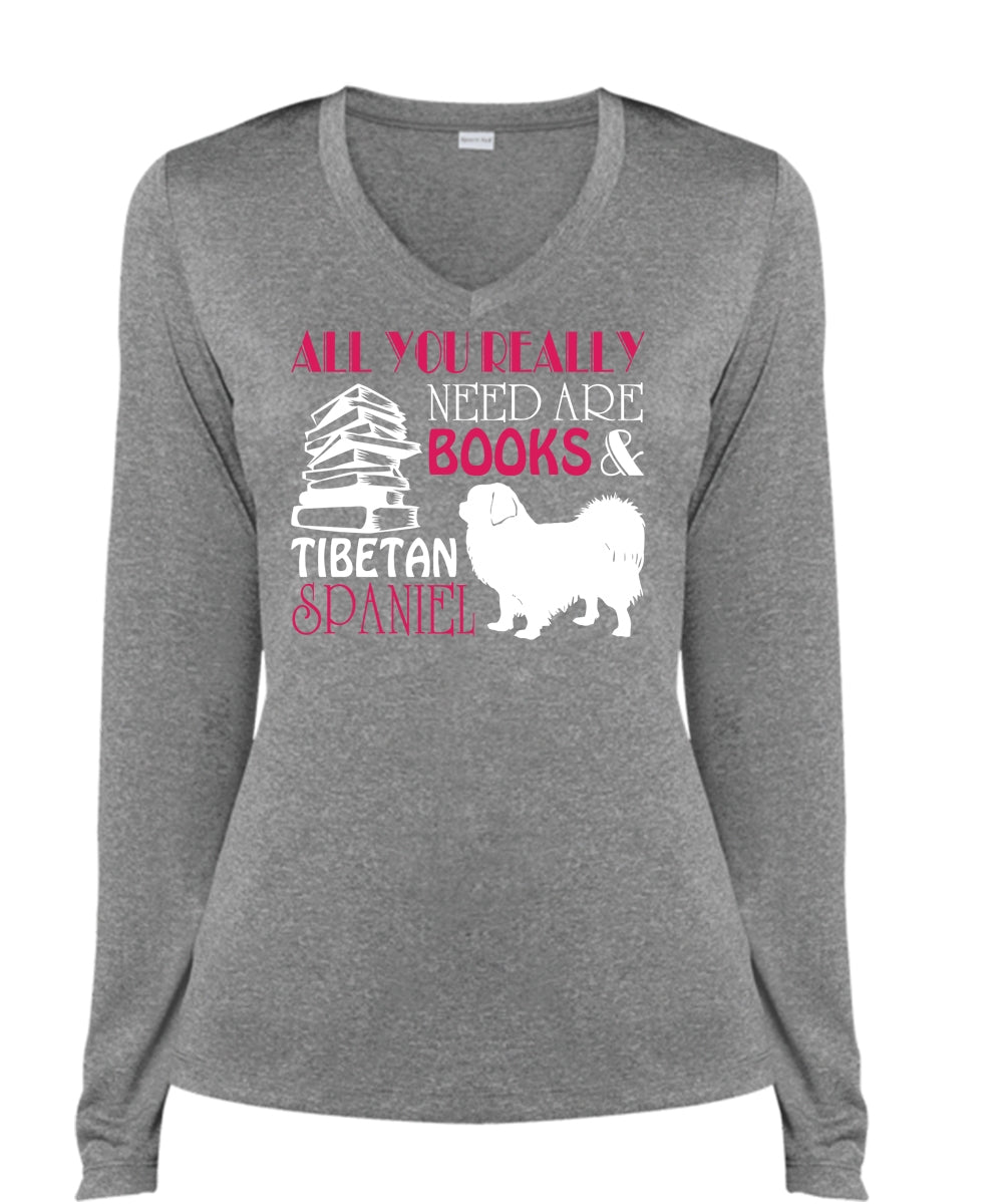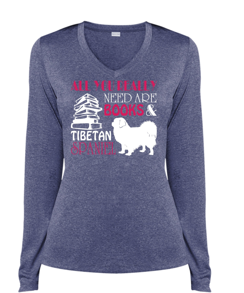 All You Really Need Are Books And Tibetan Spaniel T Shirt, My Favorite T Shirt (Ladies LS Heather V-Neck)