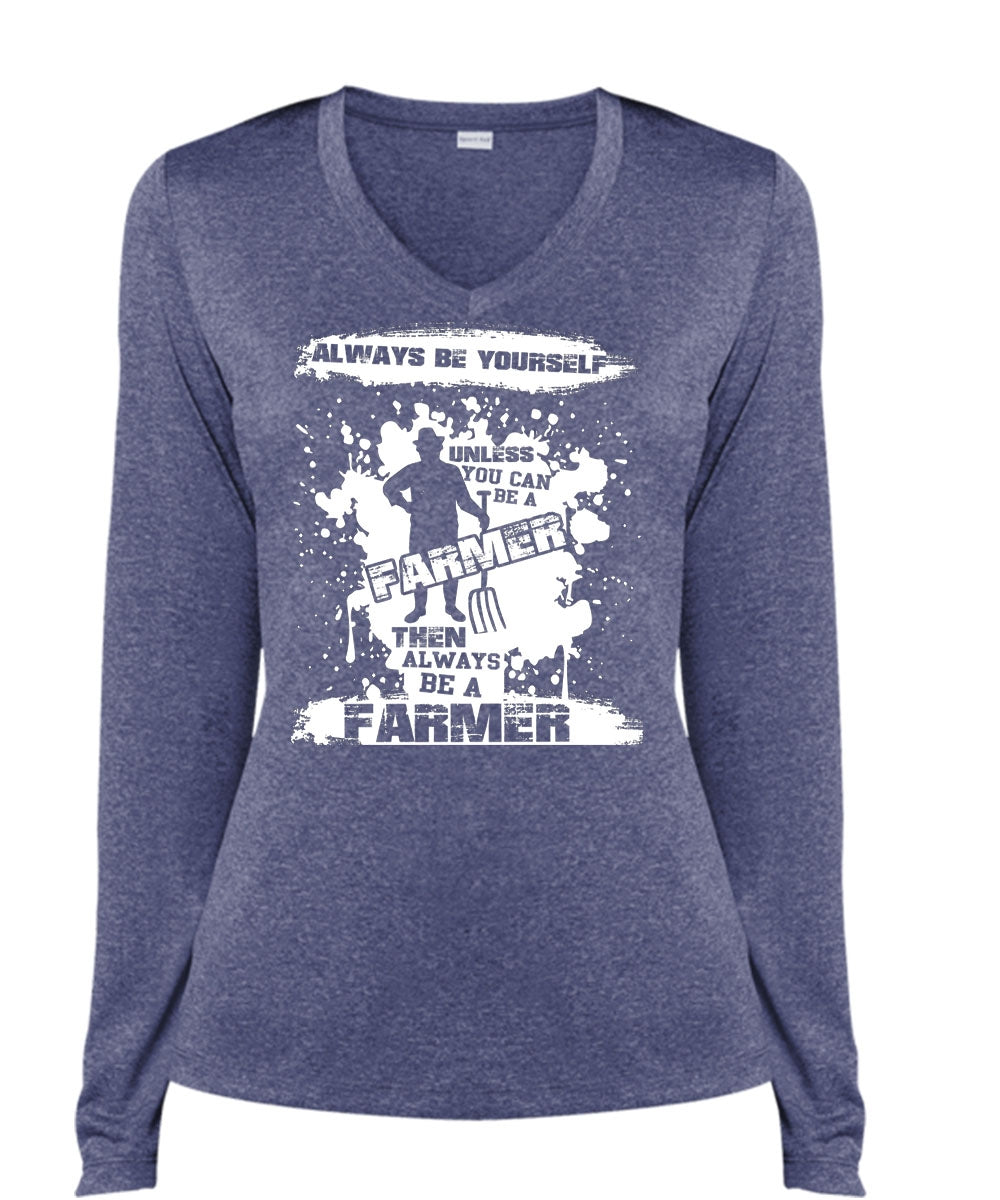 Always Be A Farmer T Shirt, You Can Be A Farmer T Shirt, Cool Shirt (Ladies LS Heather V-Neck)