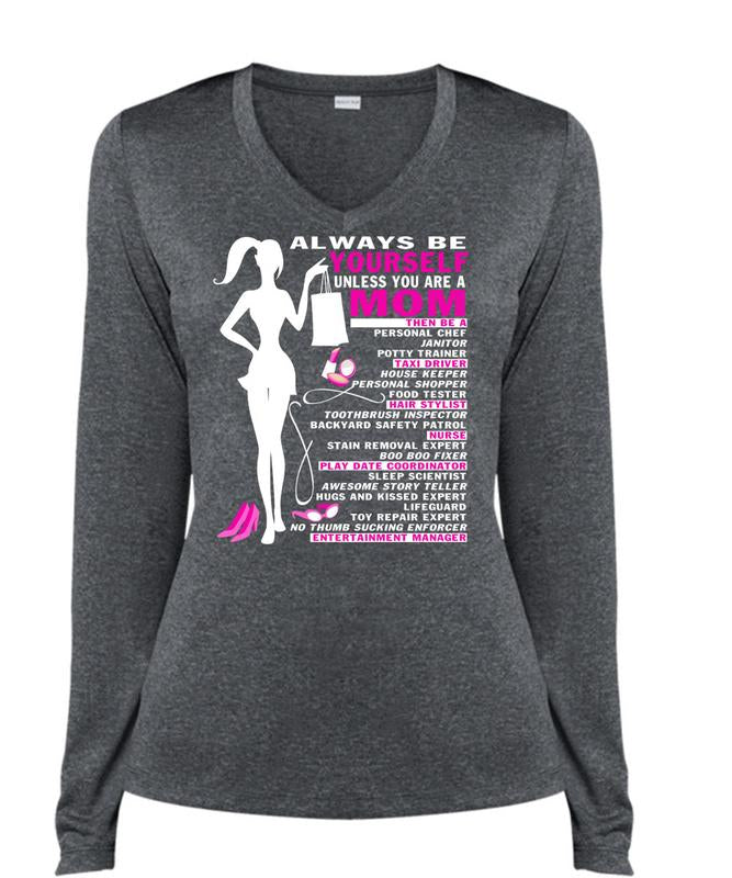 Always Be Yourself Unless You Are A Mom T Shirt, Being A Mama T Shirt, Cool Shirt (Ladies LS Heather V-Neck)