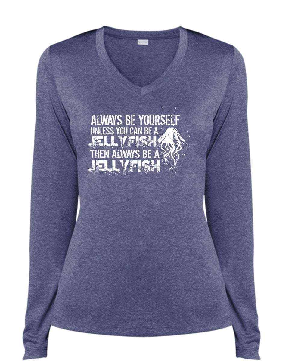 Always Be Yourself Unless You Can Be A Jellyfish T Shirt, Favorite T Shirt (Ladies LS Heather V-Neck)