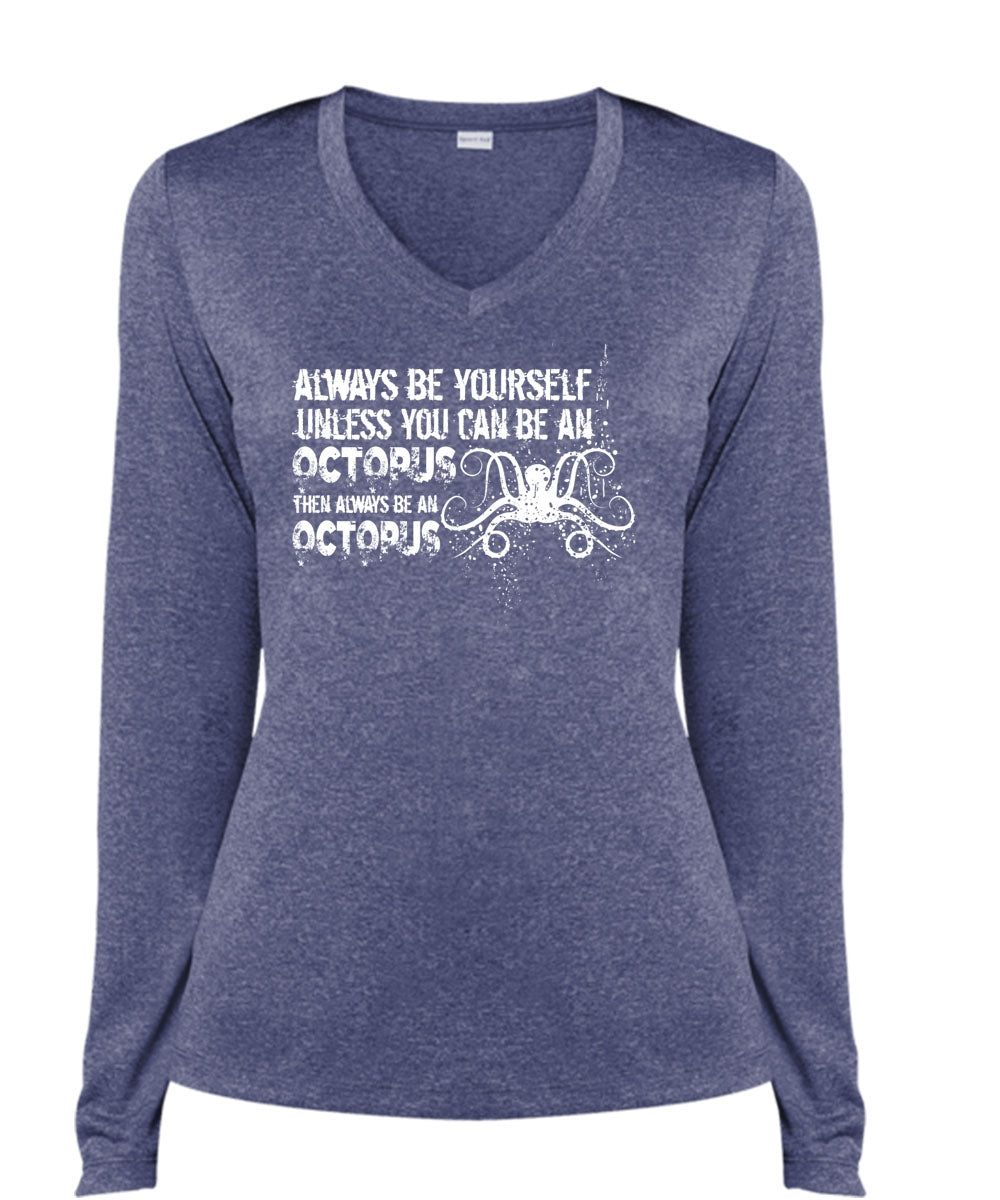 Always Be Yourself Unless You Can Be An Octopus T Shirt, Favorite T Shirt (Ladies LS Heather V-Neck)