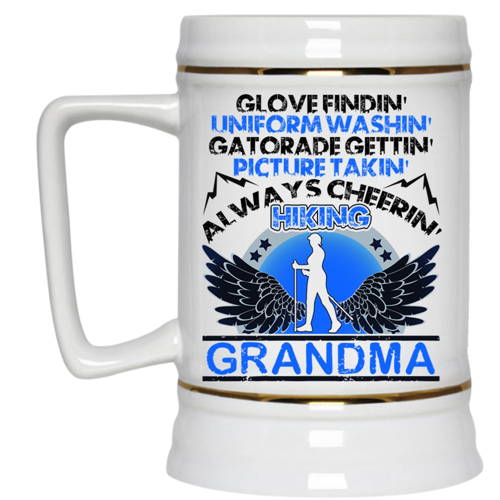 Always Cheering Hiking Grandma Beer Stein 22oz, Glove Finding Picture Taking Beer Mug