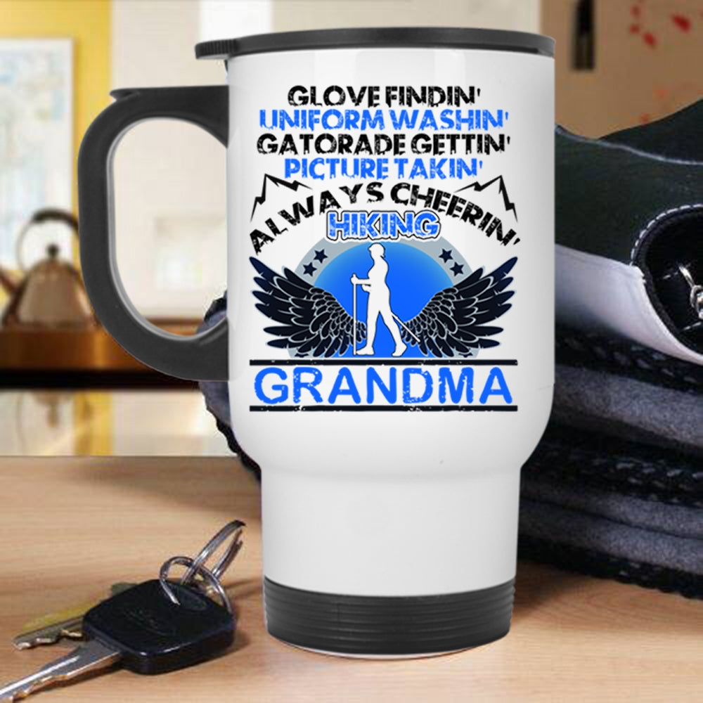 Always Cheering Hiking Grandma Travel Mug, Glove Finding Picture Taking Mug