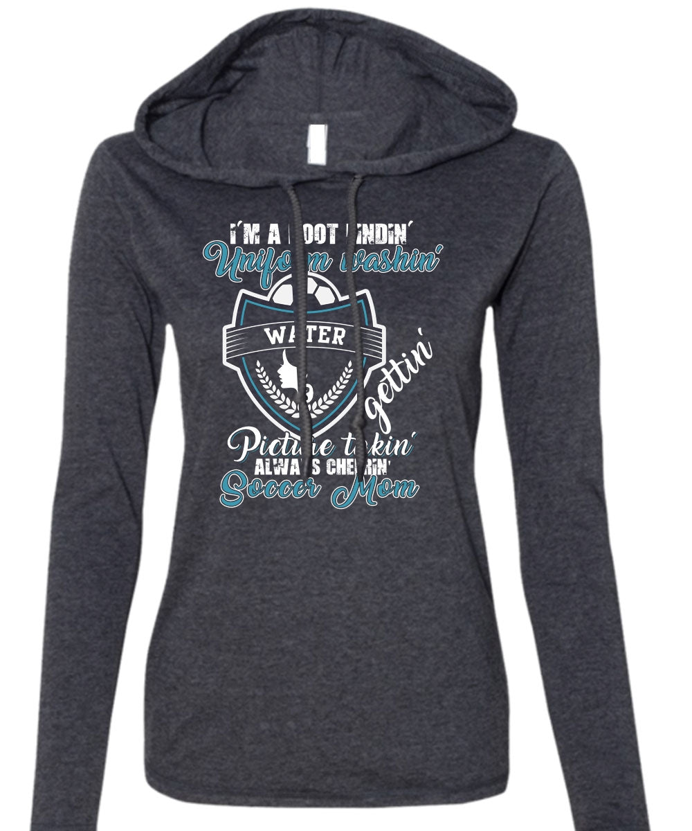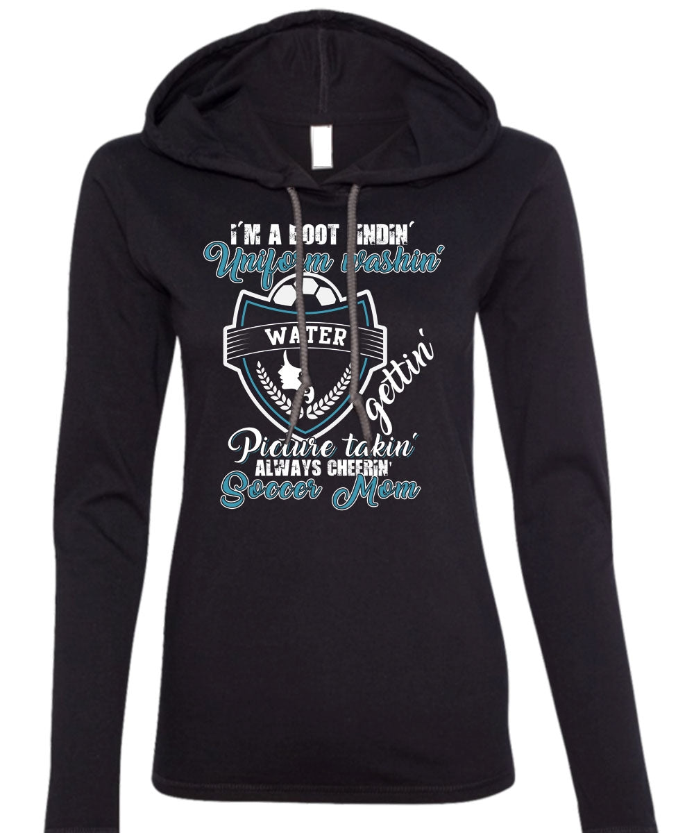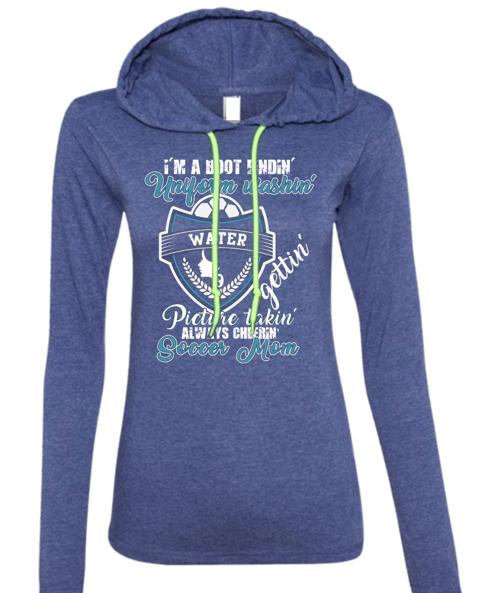 Always Cheering Soccer Mom T Shirt, Being A Soccer Coach T Shirt (Anvil Ladies Ringspun Hooded)