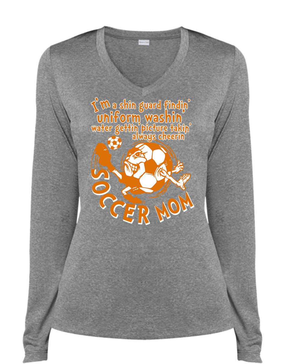 Always Cheering Soccer Mom T Shirt, I'm A Shin Guard T Shirt, Cool Shirt (Ladies LS Heather V-Neck)