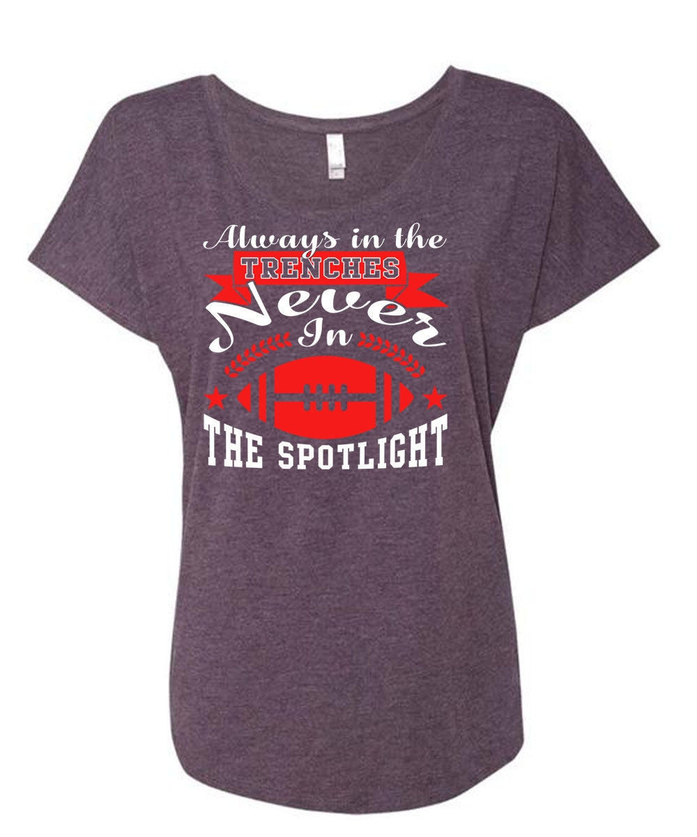 Always In The Trenches Never In The Spotlight T Shirt, I Love Rugby T Shirt, Cool Shirt (Ladies' Triblend Dolman Sleeve)
