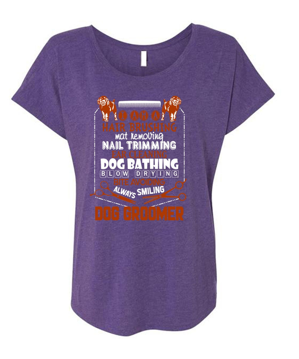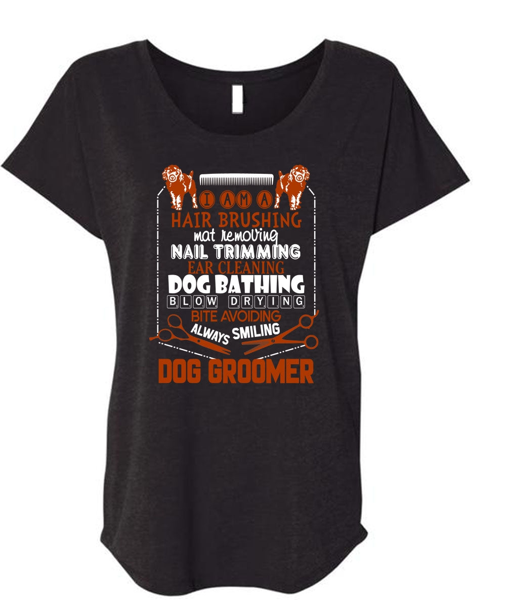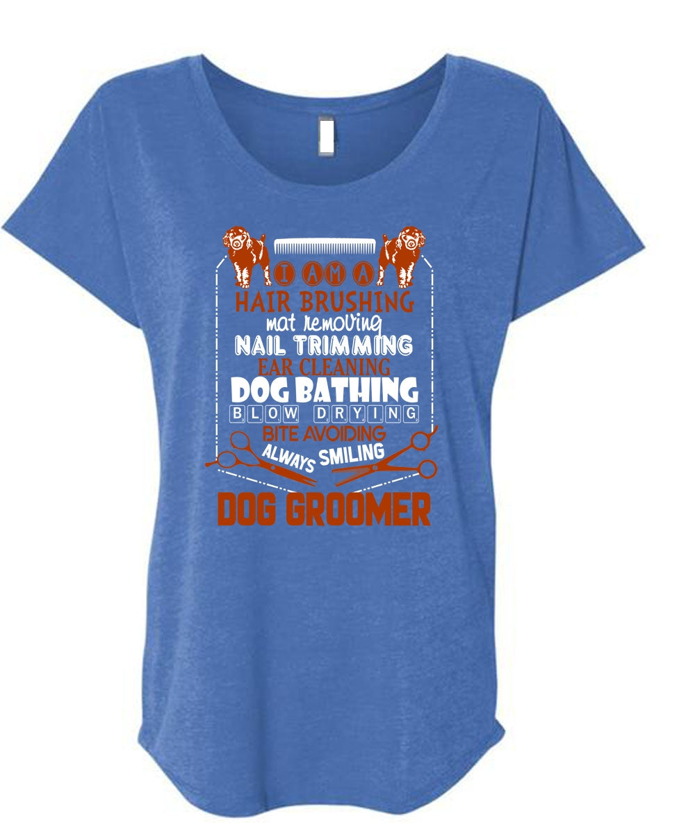 Always Smiling Dog Groomer T Shirt, I Am A Hair Brushing T Shirt, Cool Shirt (Ladies' Triblend Dolman Sleeve)