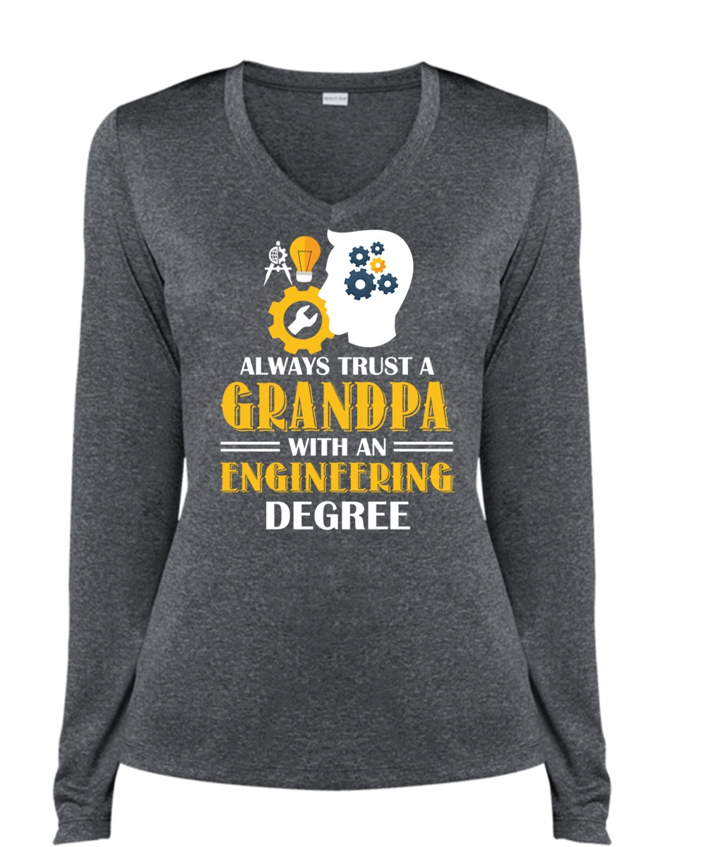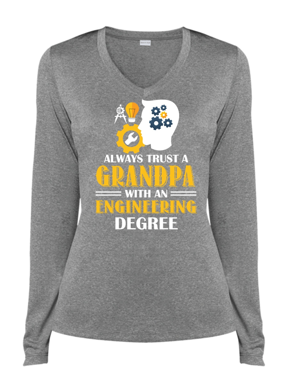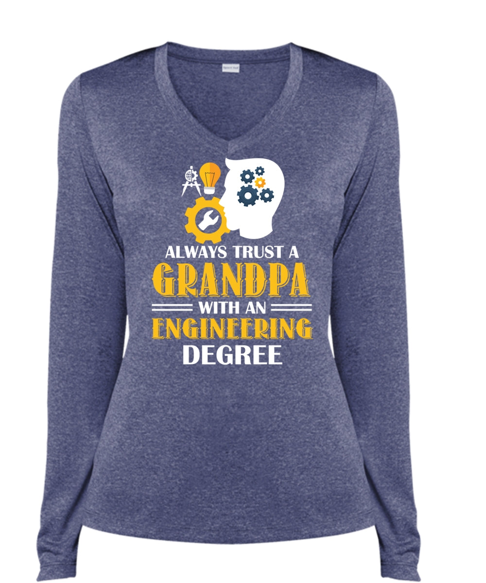 Always Trust A Grandpa With An Engineering Degree T Shirt, Job T Shirt (Ladies LS Heather V-Neck)
