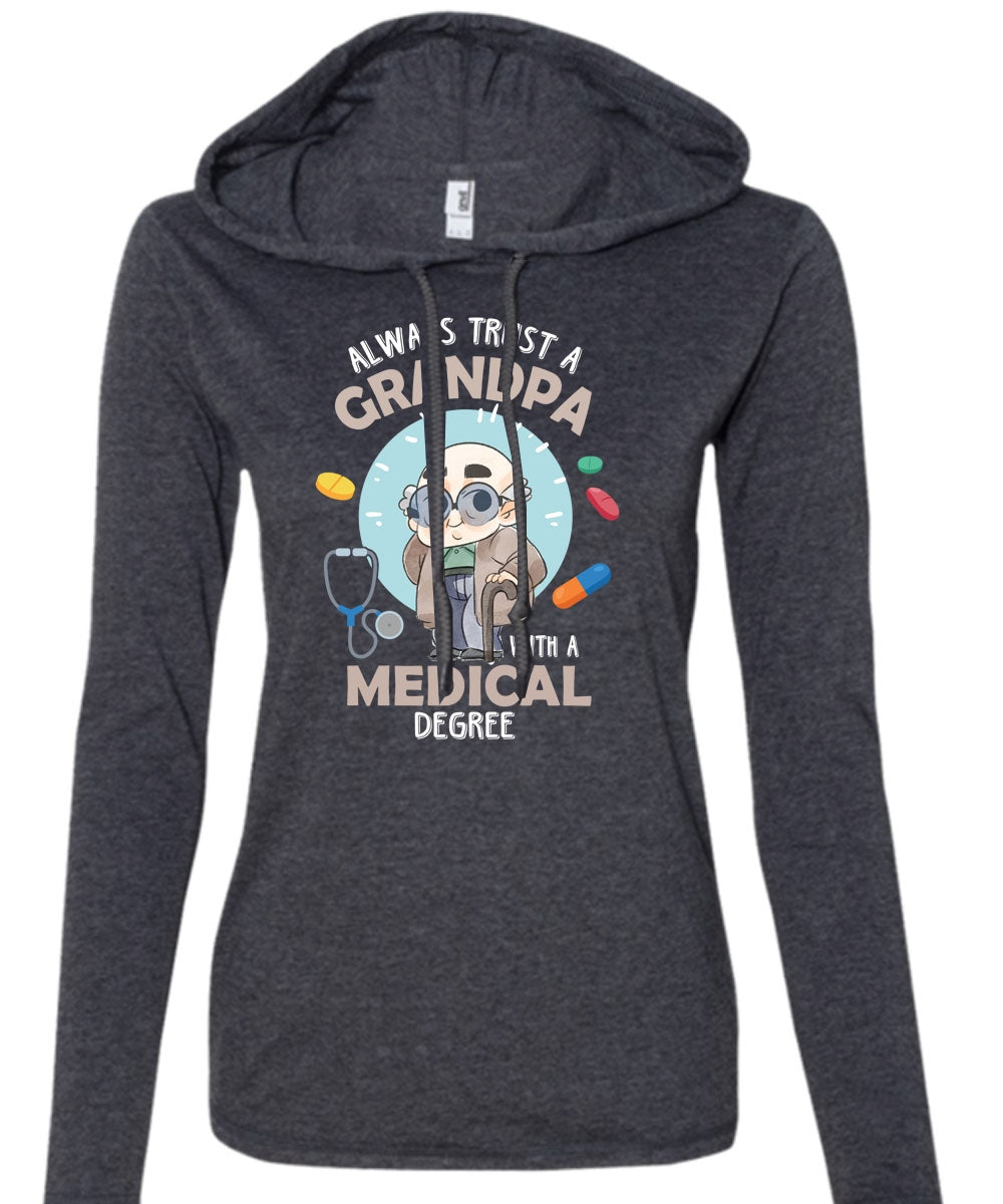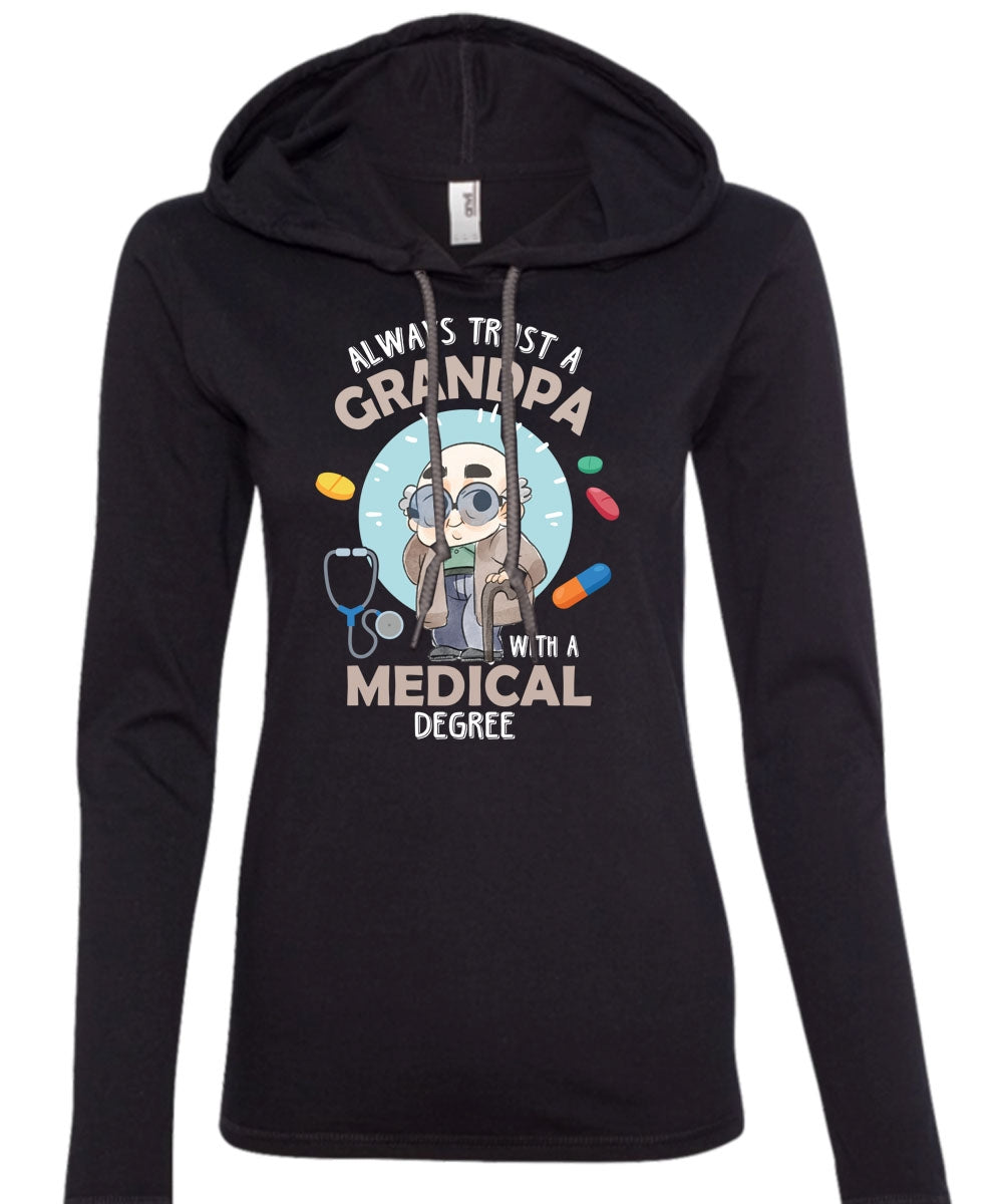 Always Trust A Grandpa With Medical Degree T Shirt, Job T Shirt (Anvil Ladies Ringspun Hooded)