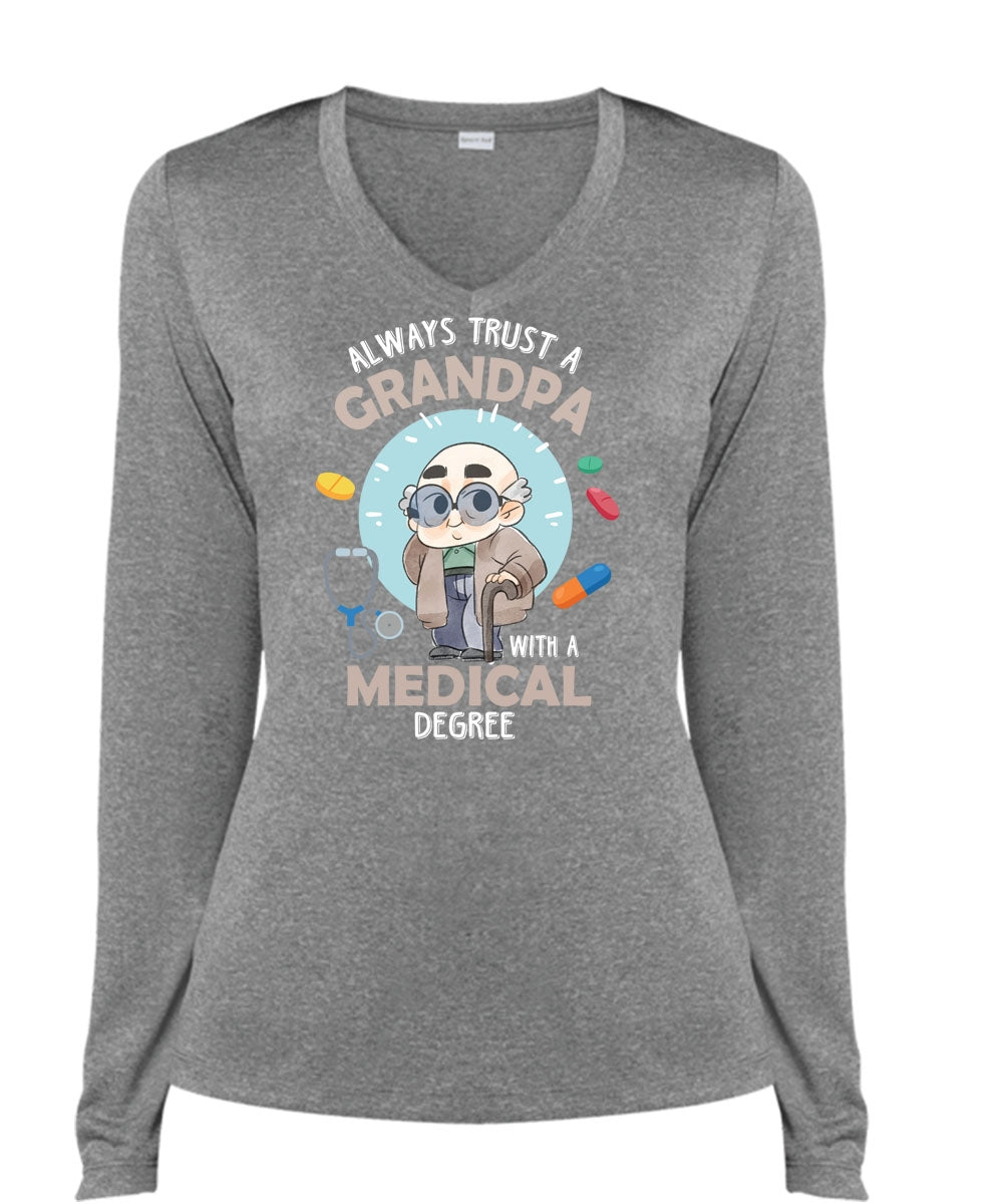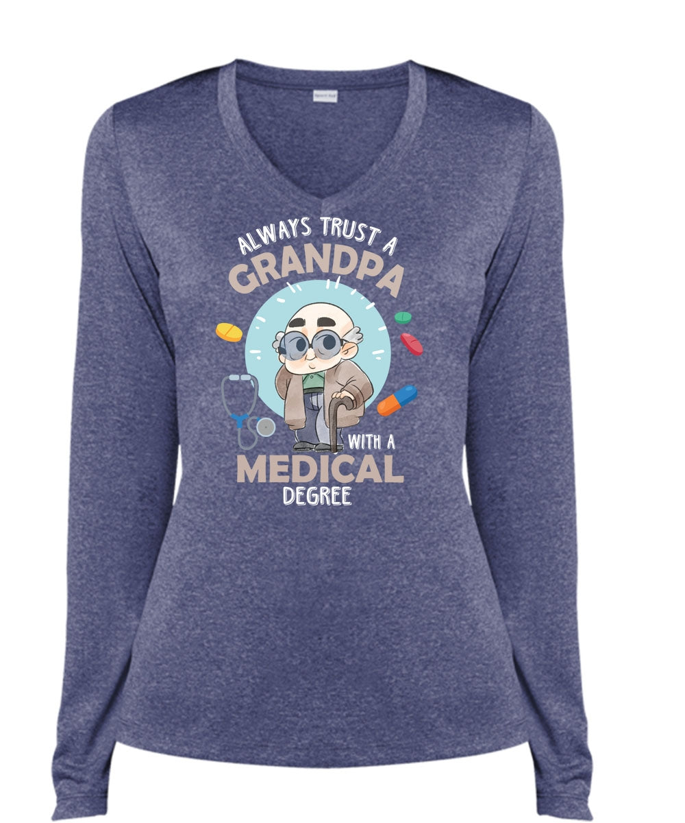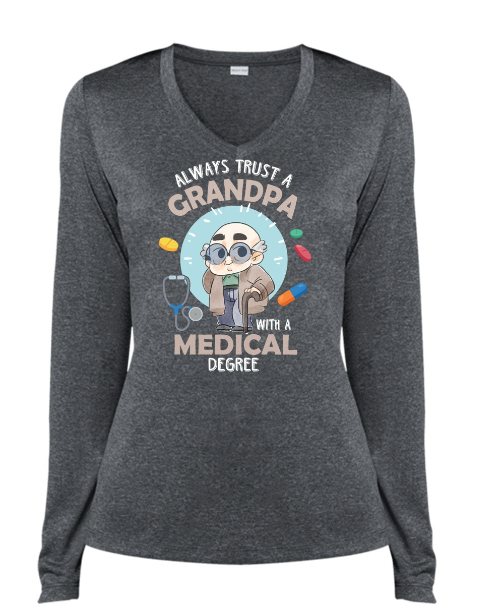 Always Trust A Grandpa With Medical Degree T Shirt, Job T Shirt (Ladies LS Heather V-Neck)