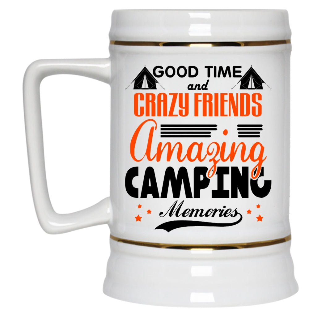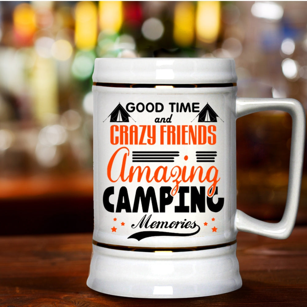 Amazing Camping Memories Beer Stein 22oz, Good Time And Crazy Friends Beer Mug