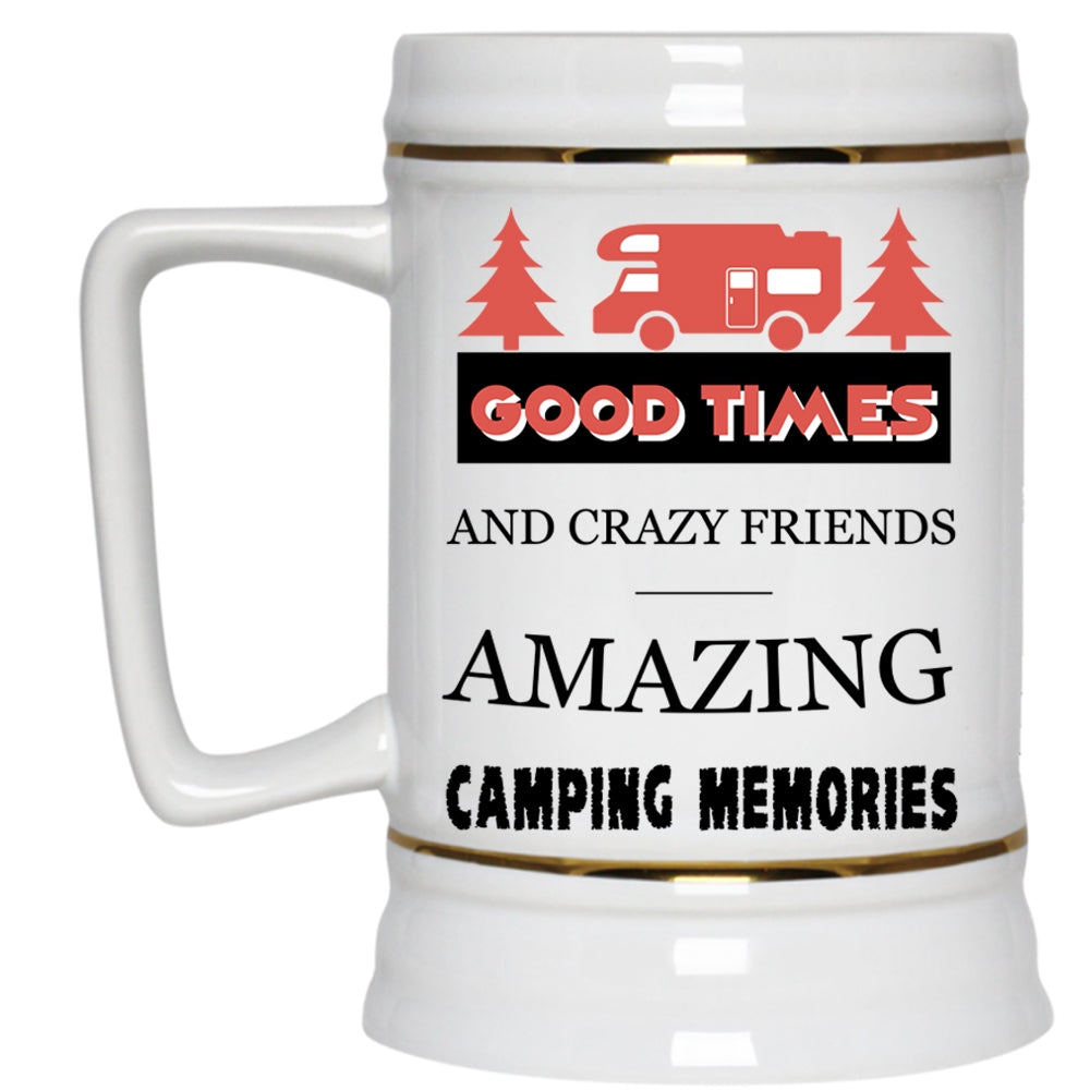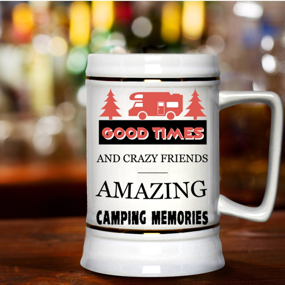 Amazing Camping Memories Beer Stein 22oz, Good Times And Crazy Friends Beer Mug