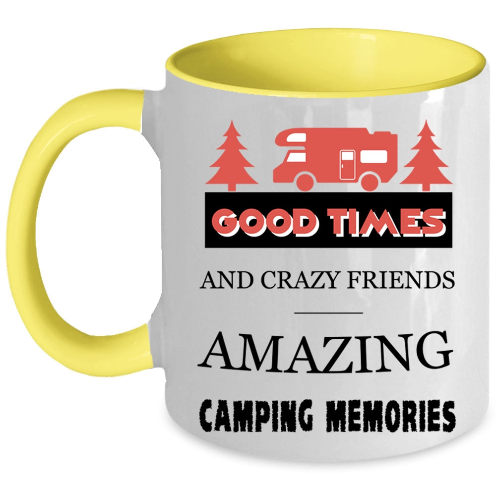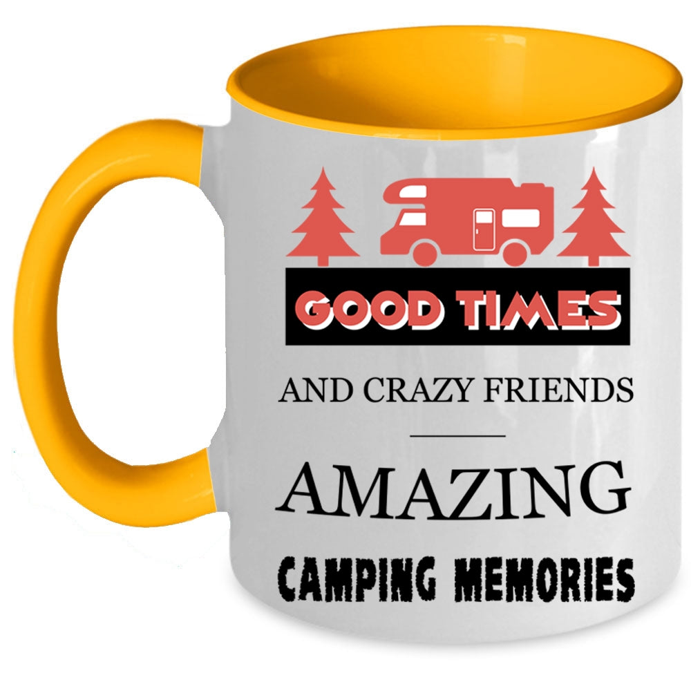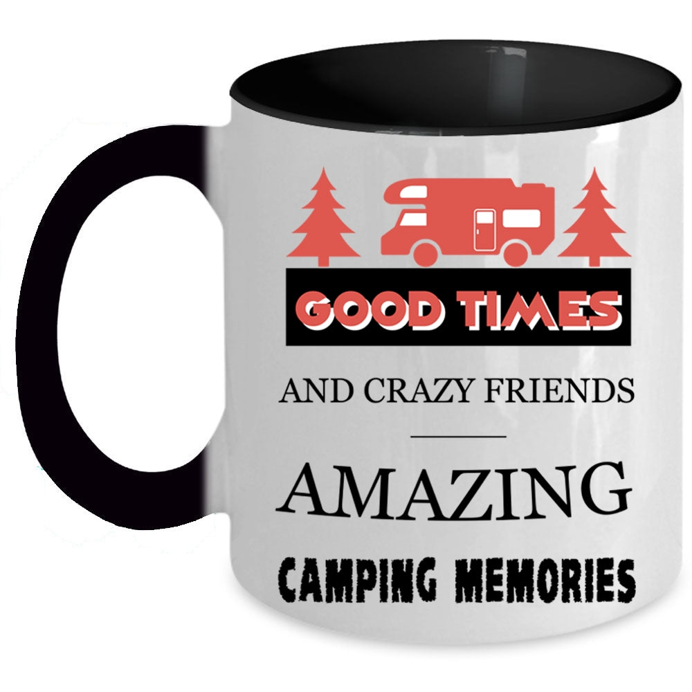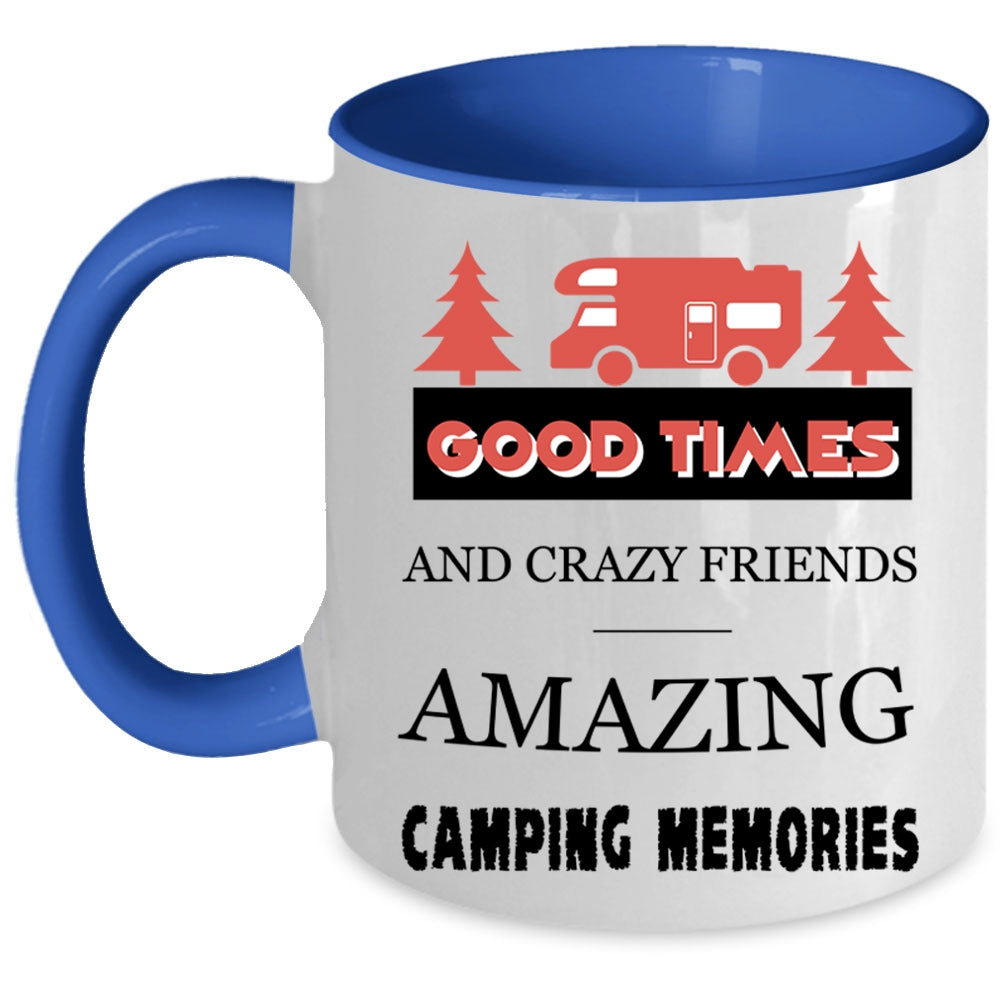 Amazing Camping Memories Coffee Mug, Good Times And Crazy Friends Accent Mug