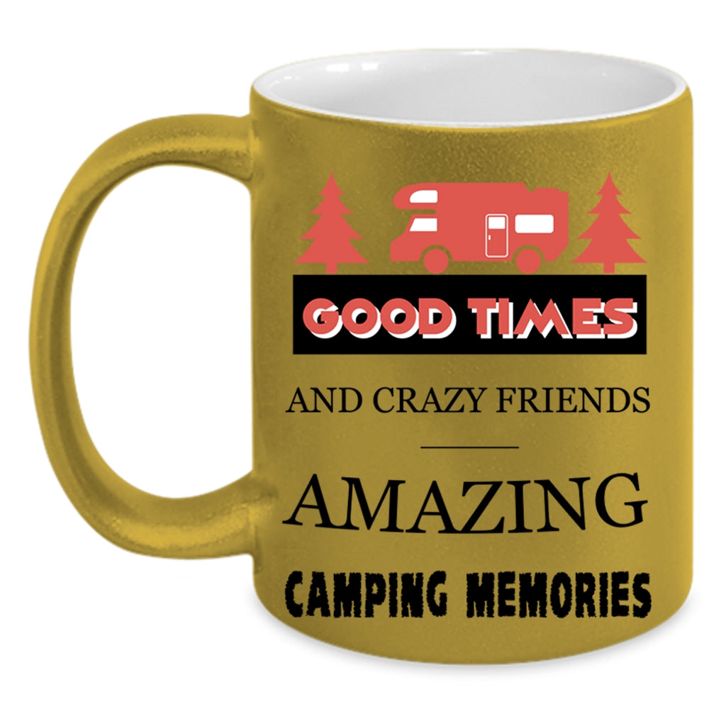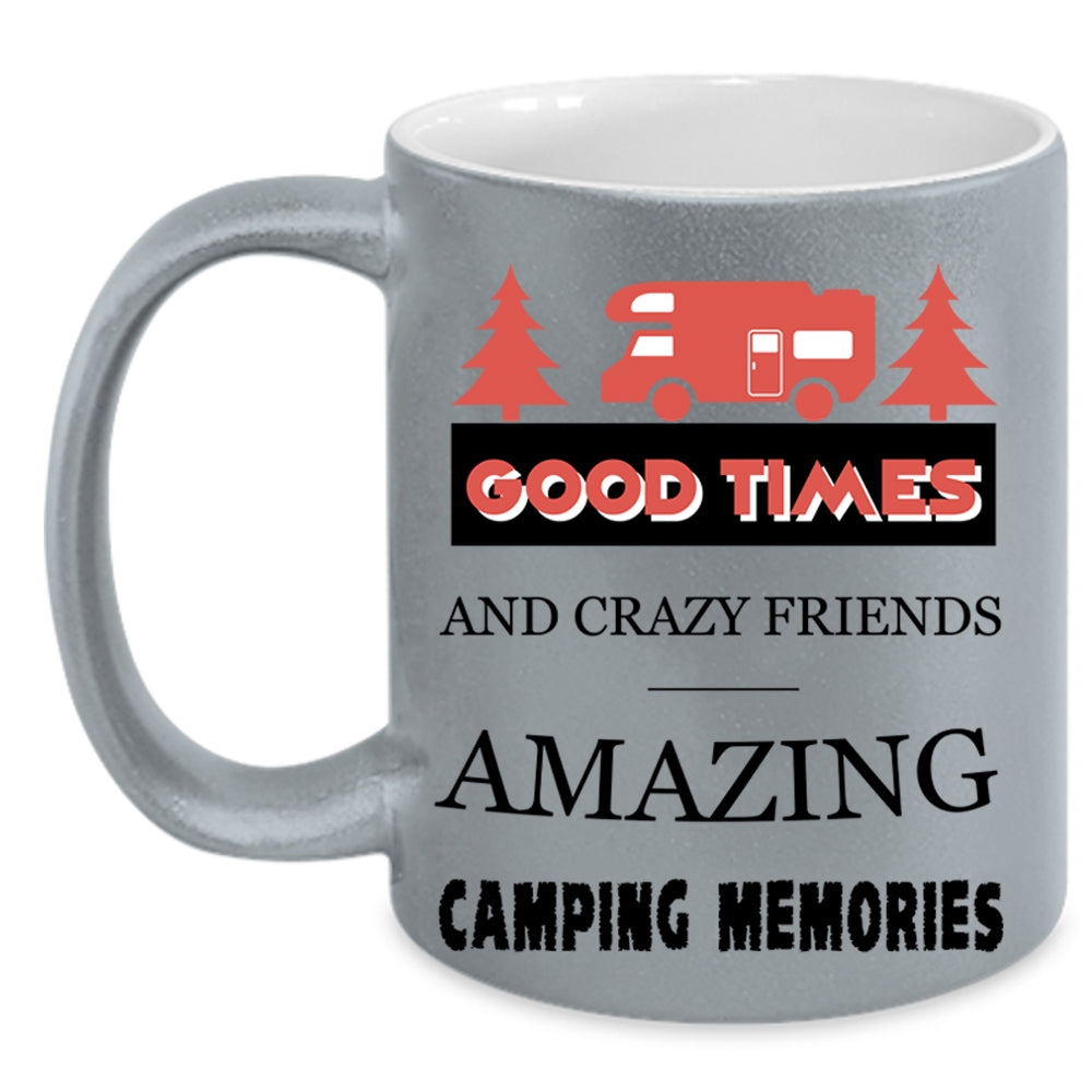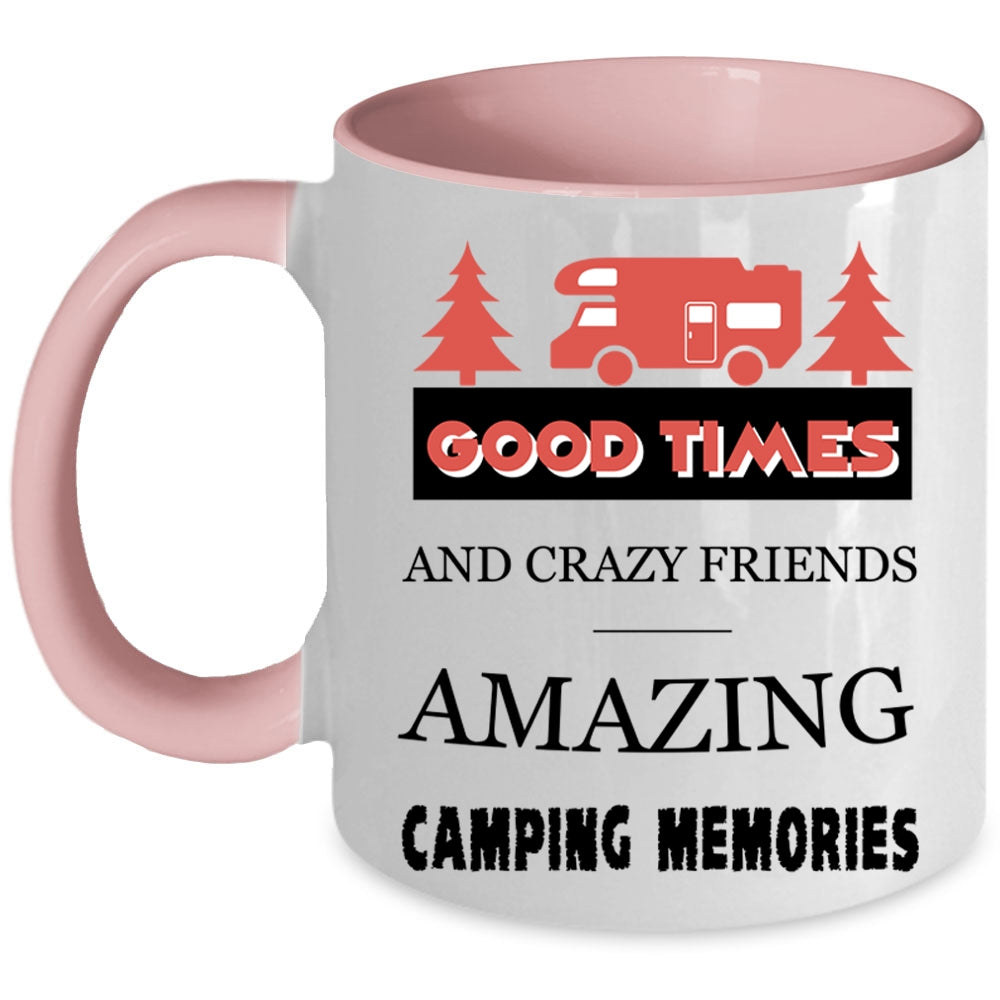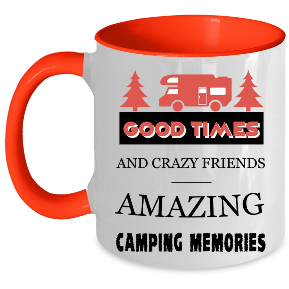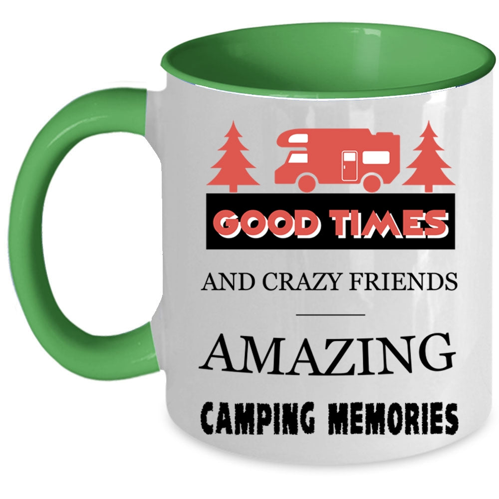 Amazing Camping Memories Coffee Mug, Good Times And Crazy Friends Accent Mug