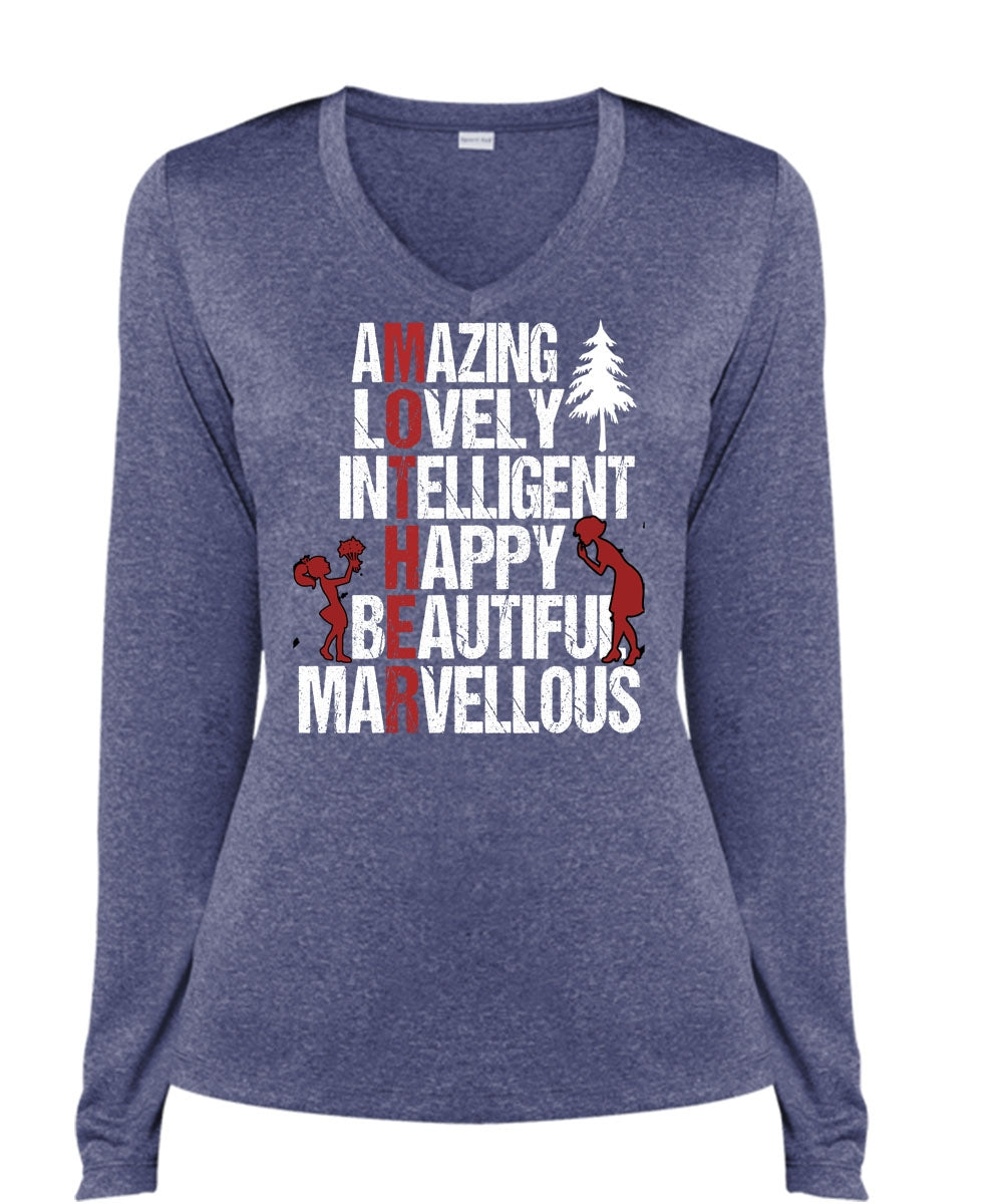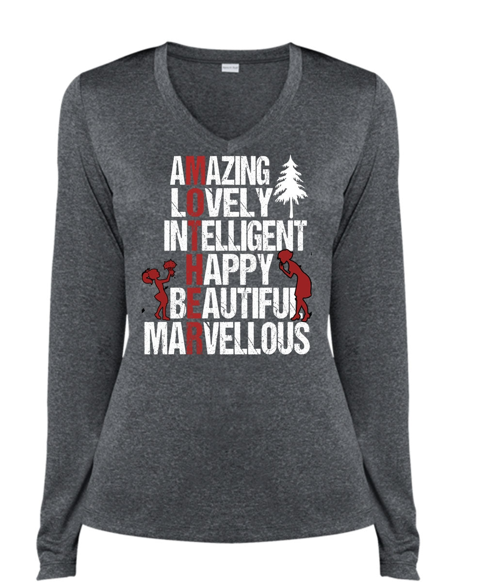 Amazing Lovely Intelligent Happy T Shirt, Being A Mom T Shirt, Cool Shirt (Ladies LS Heather V-Neck)