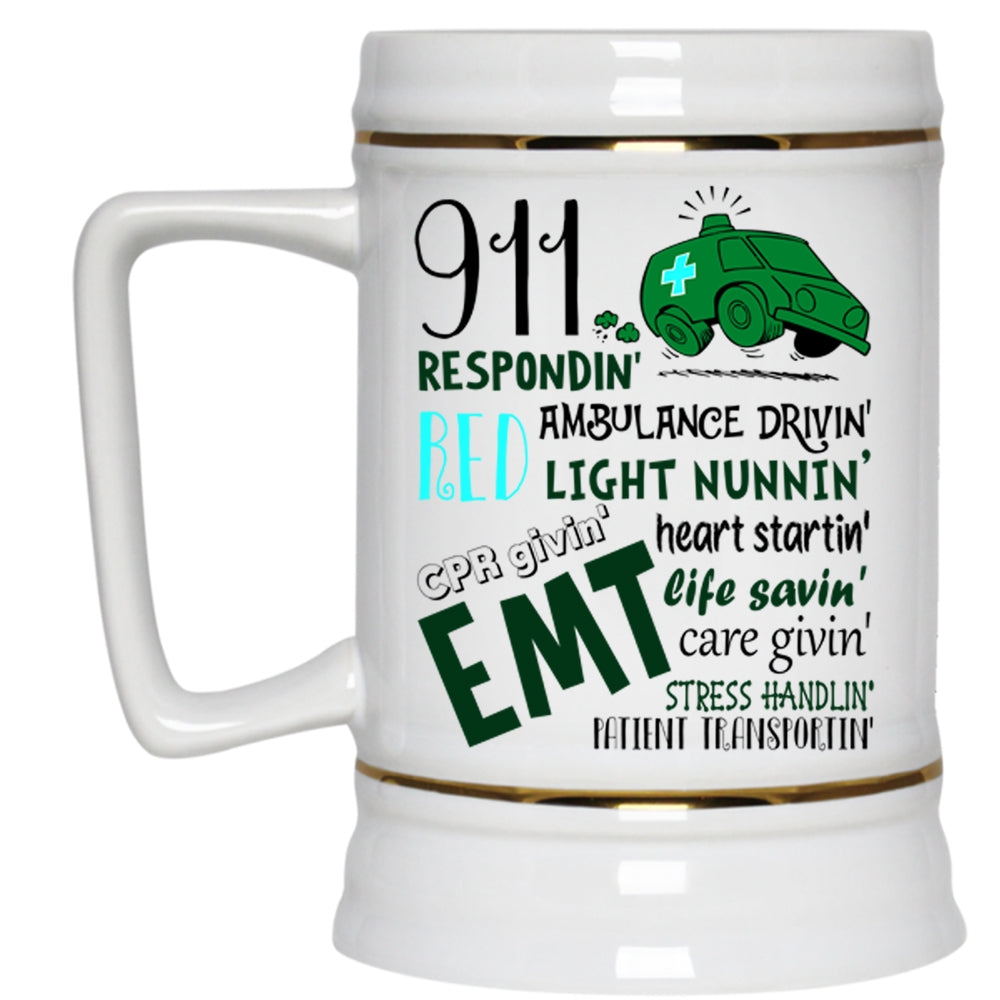 Ambulance Driving Beer Stein 22oz, 911 Responding Beer Mug