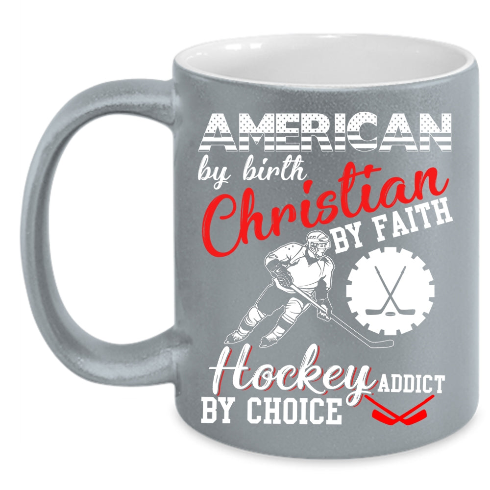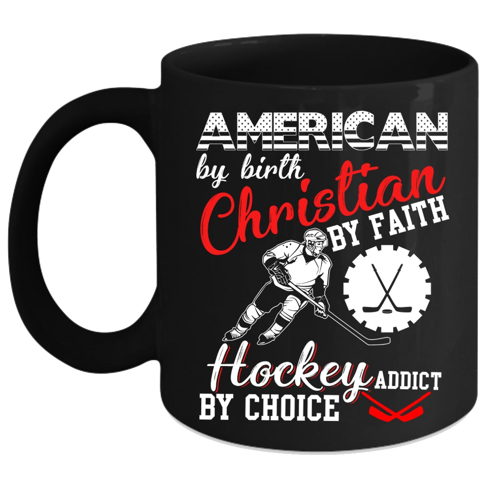 American By Birth Coffee Mug, Hockey Addict By Choice Coffee Cup