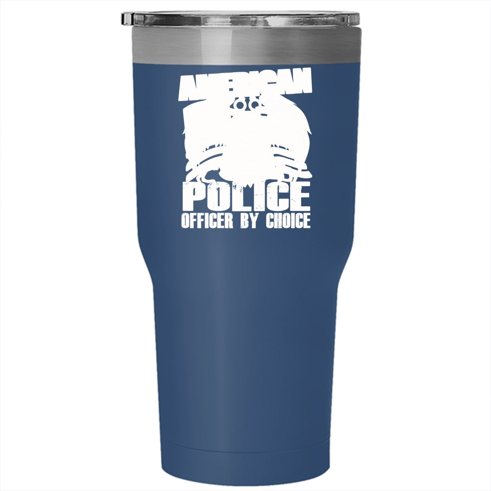 American By Birth Police Officer By Choice Tumbler 30 oz Stainless Steel, Cool Police Travel Mug