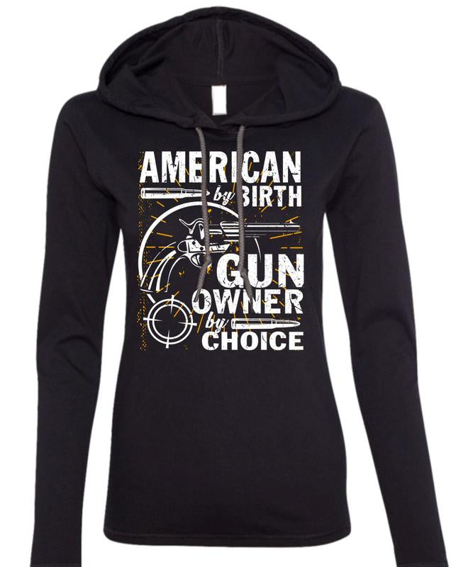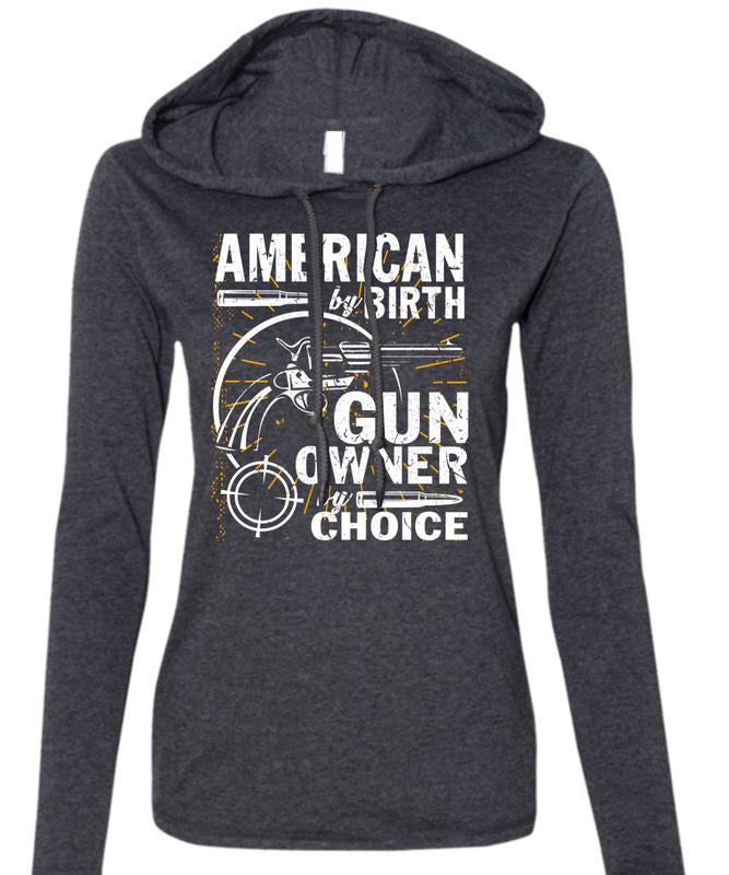 American By Birth T Shirt, Gun Owner By Choice T Shirt (Anvil Ladies Ringspun Hooded)
