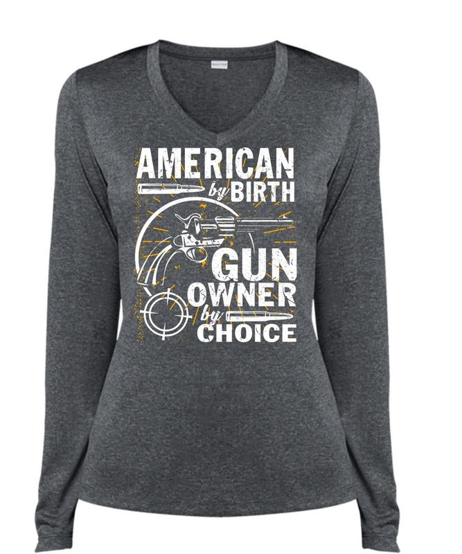 American By Birth T Shirt, Gun Owner By Choice T Shirt, Cool Shirt (Ladies LS Heather V-Neck)