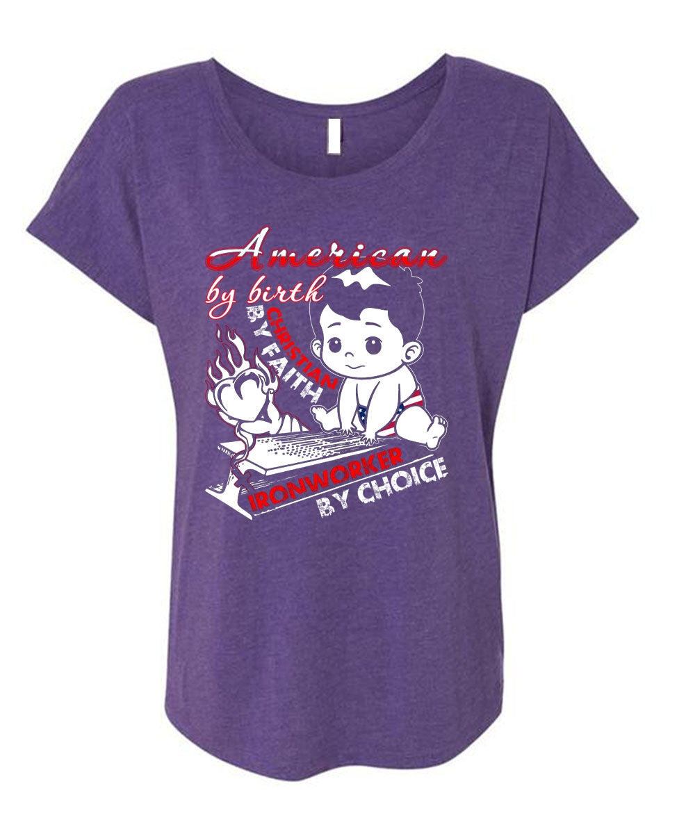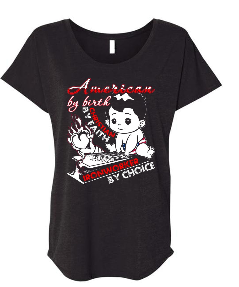 American By Birth T Shirt, Ironworker By Choice T Shirt, Cool Shirt (Ladies' Triblend Dolman Sleeve)