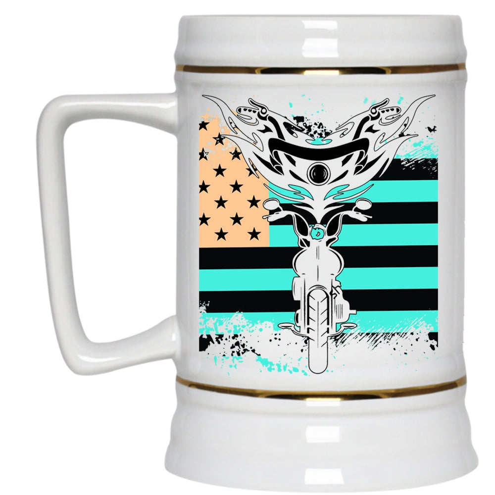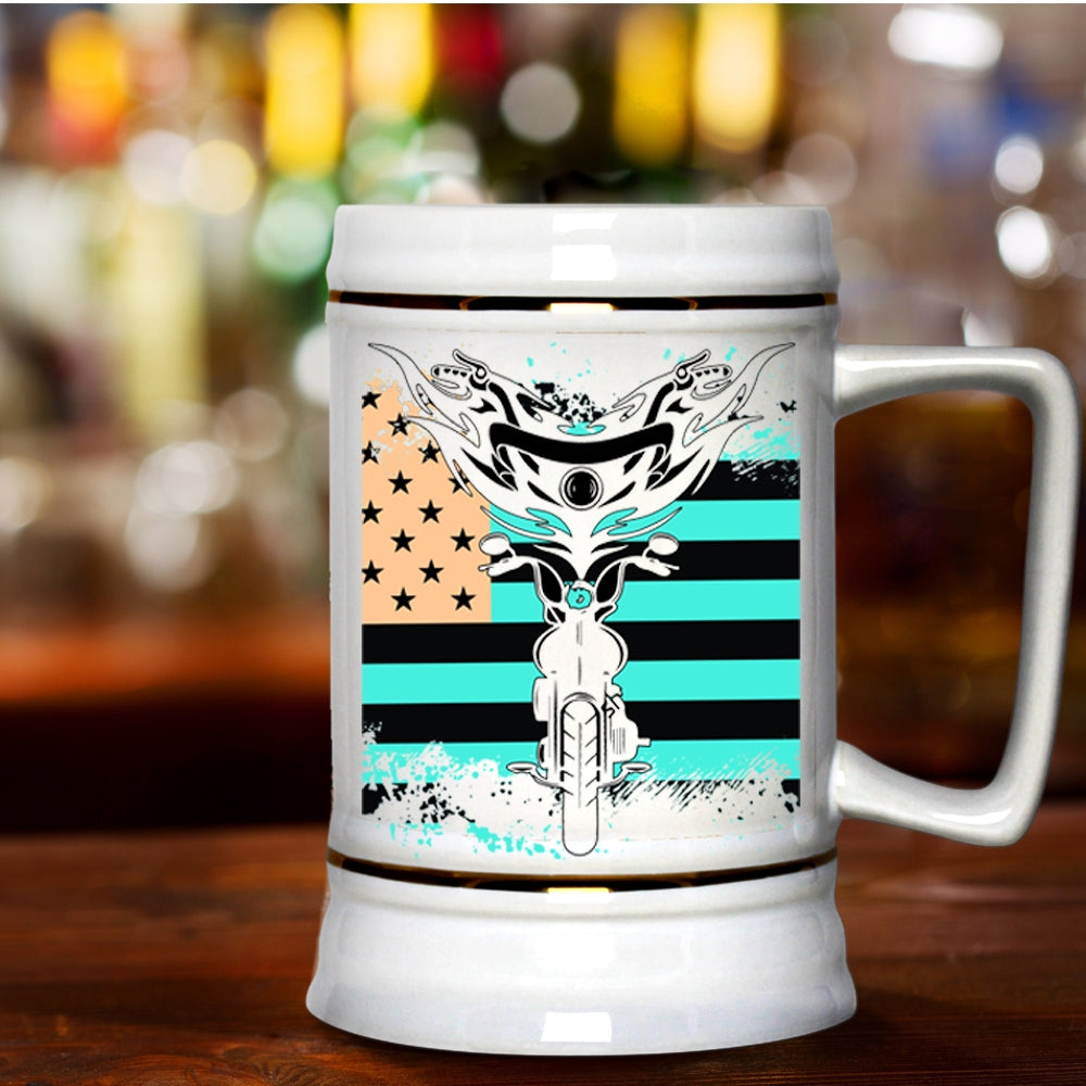 American Flag Beer Stein 22oz, Cool Motorcycles Beer Mug