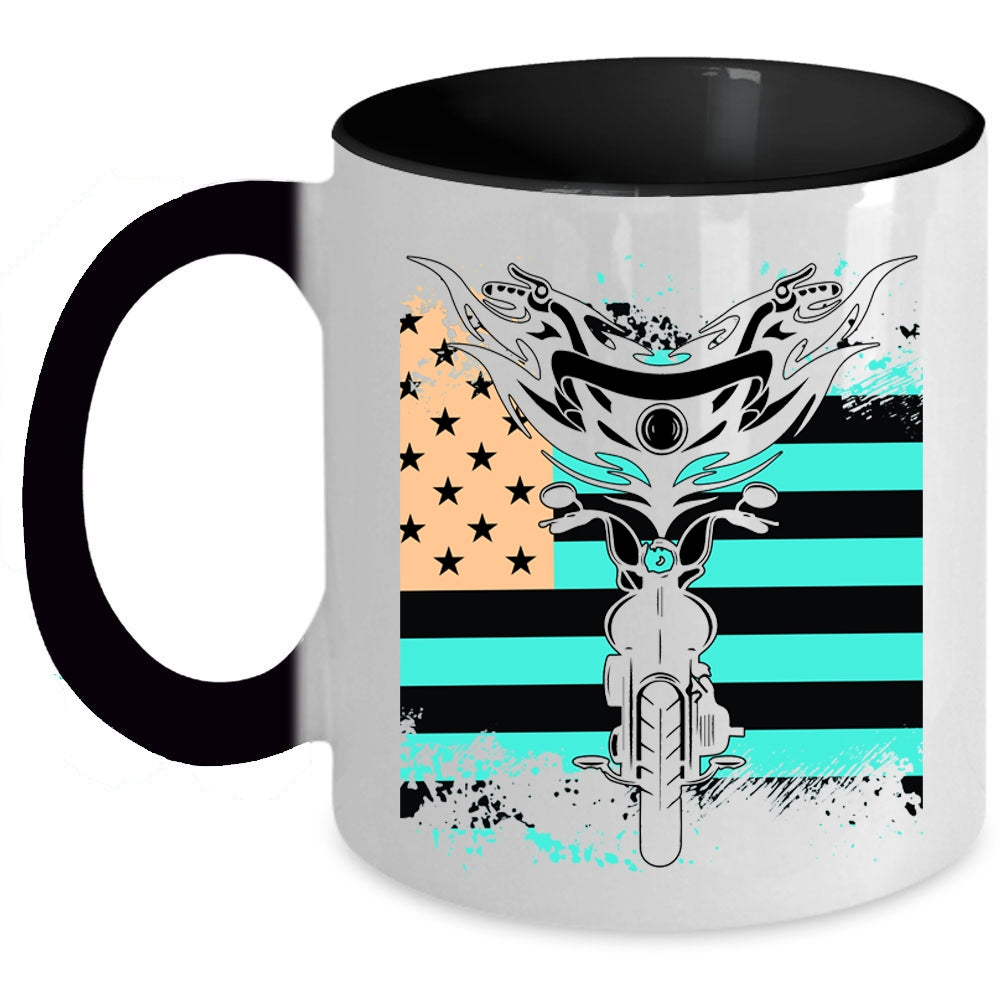 American Flag Coffee Mug, Cool Motorcycles Accent Mug