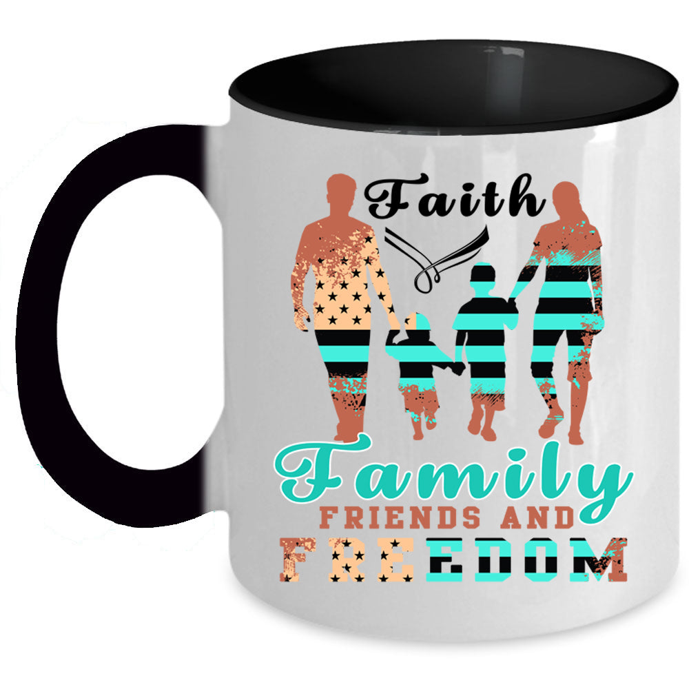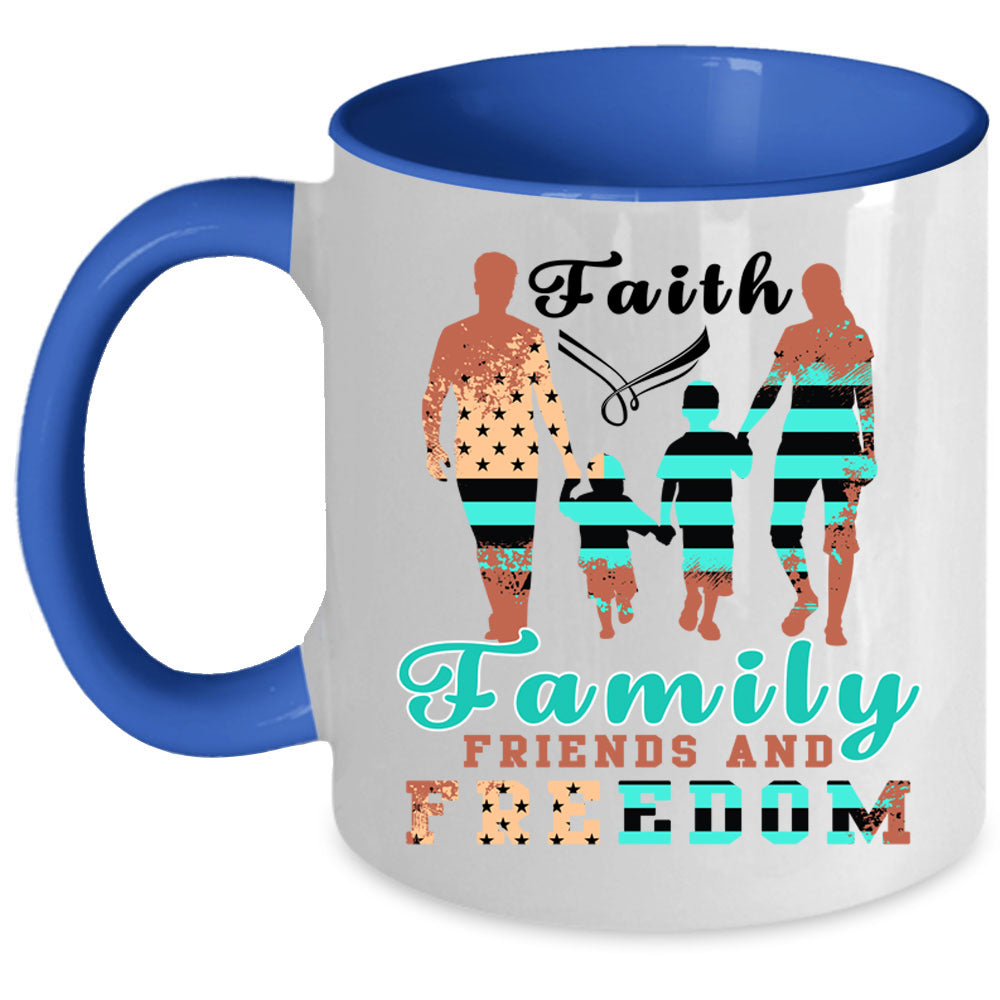 American Flag Coffee Mug, Faith Family Friends And Freedom Accent Mug
