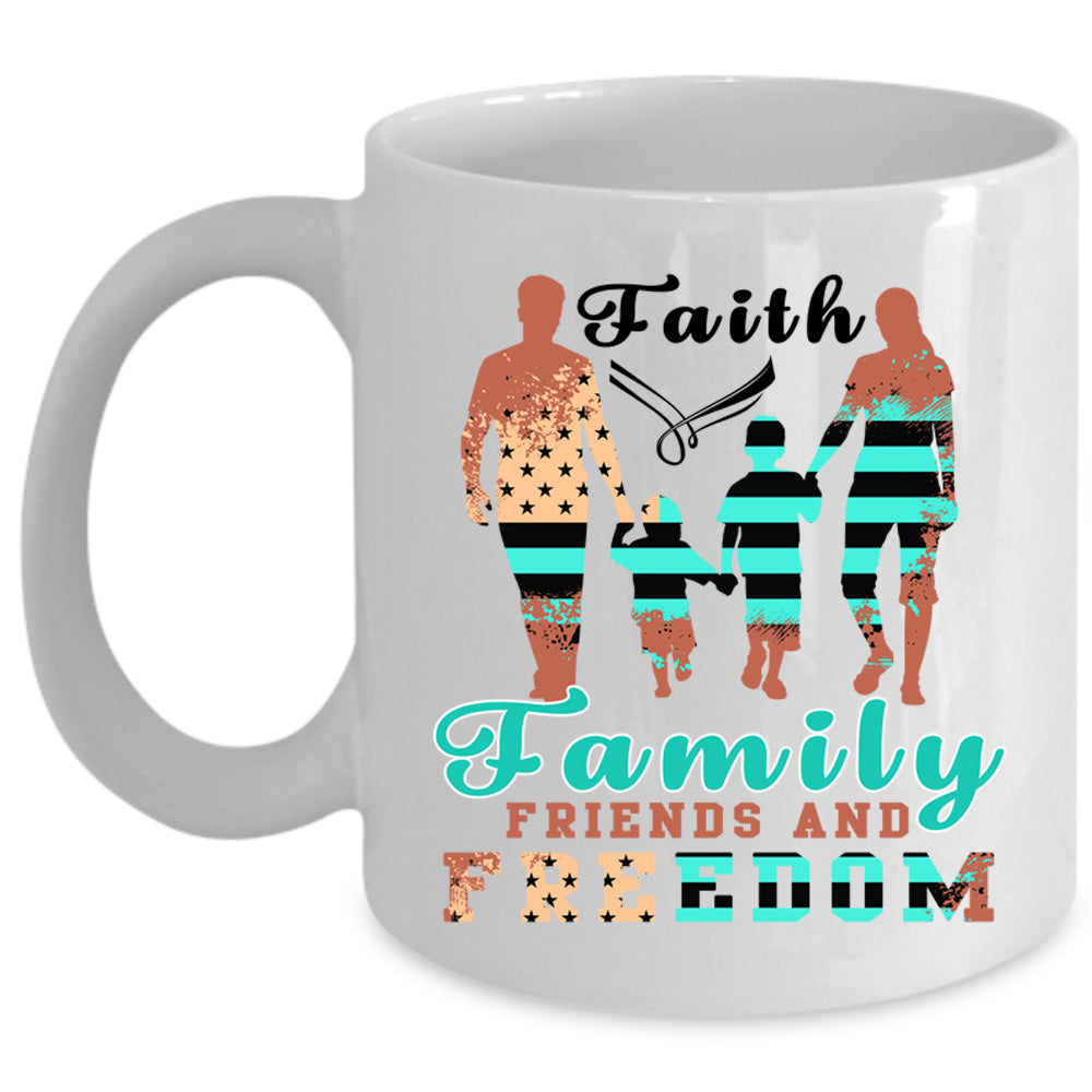 American Flag Coffee Mug, Faith Family Friends And Freedom Cup
