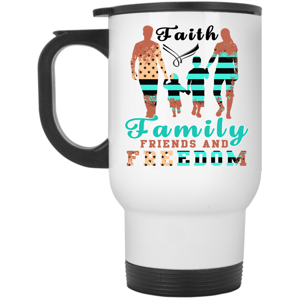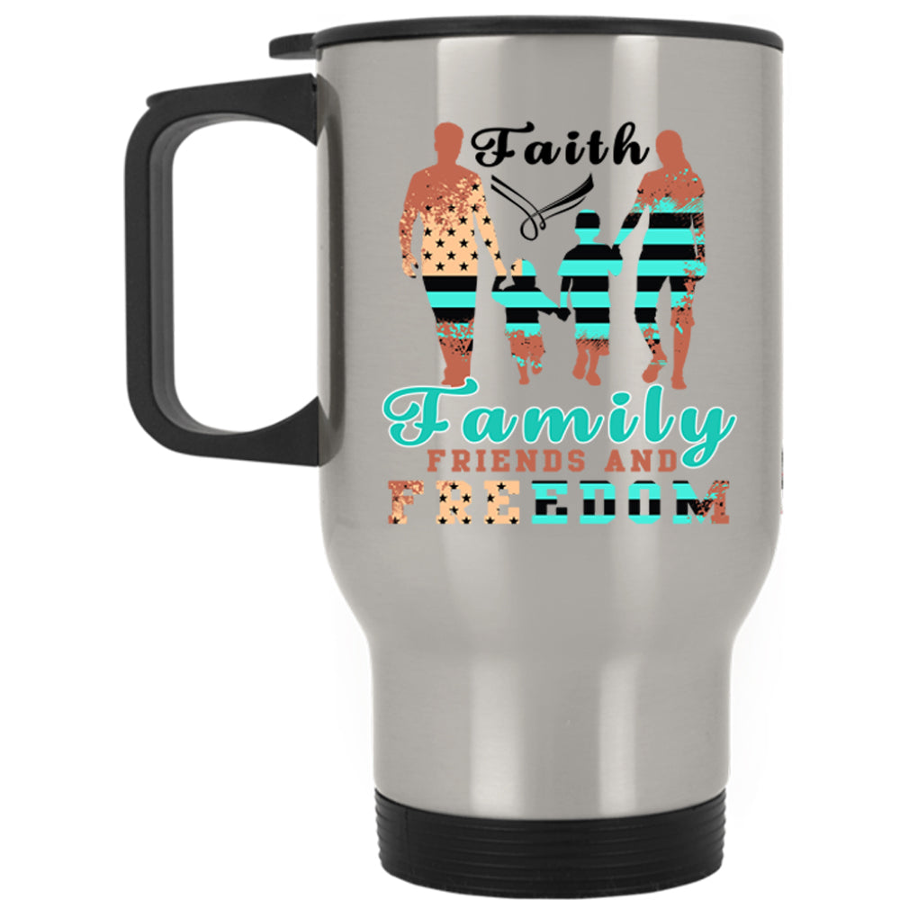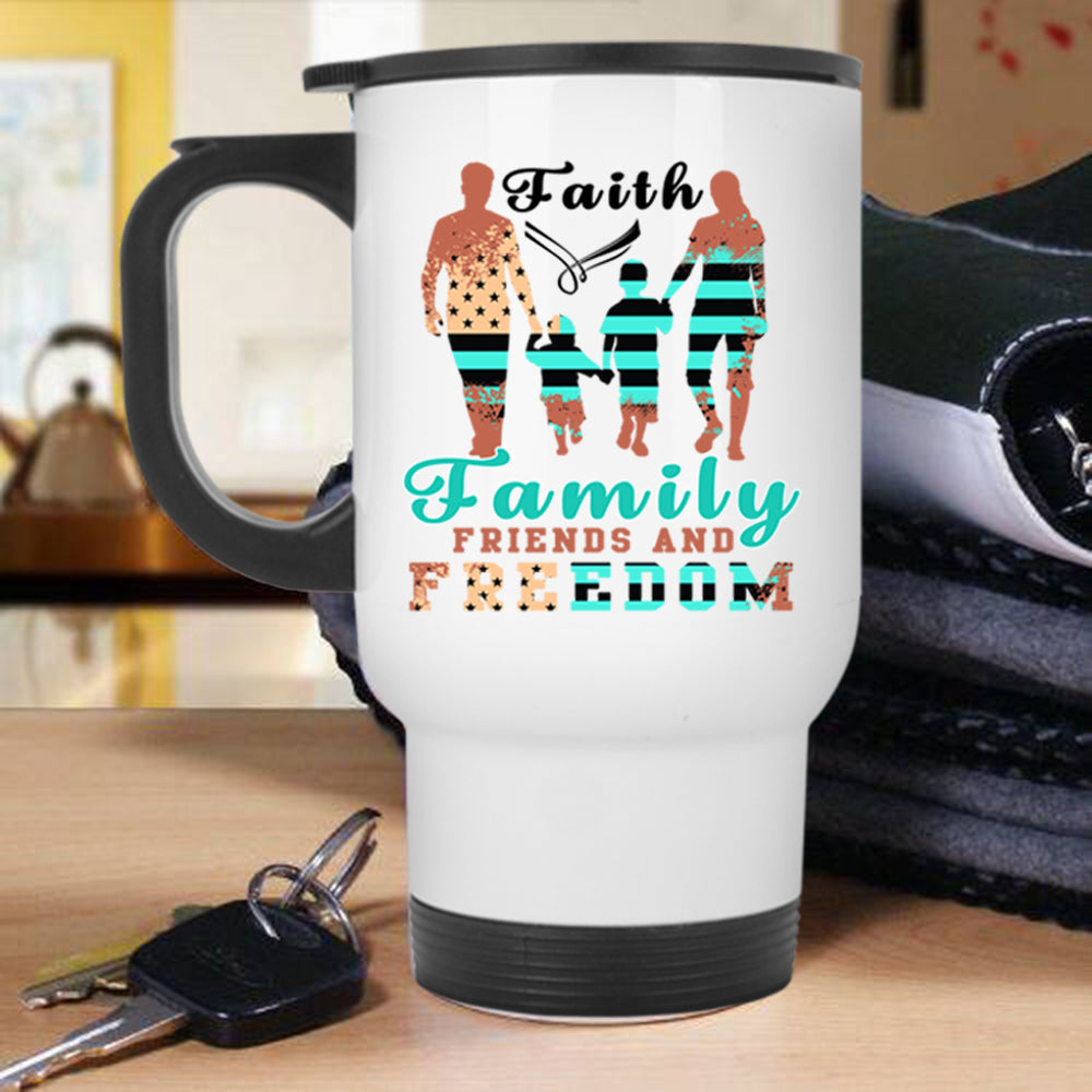 American Flag Travel Mug, Faith Family Friends And Freedom Mug