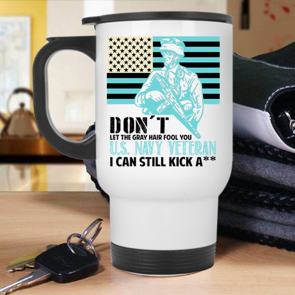 American Flag Travel Mug, U.S Navy Veteran Mug