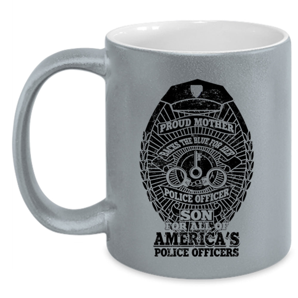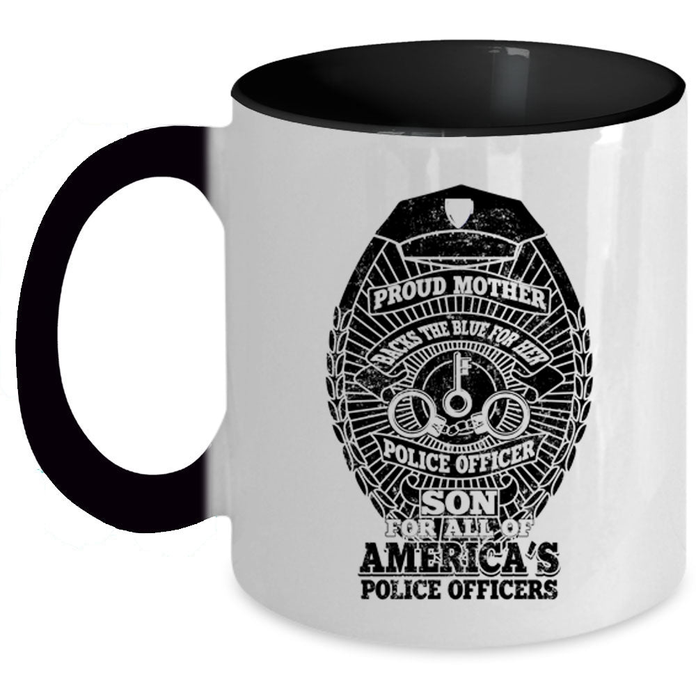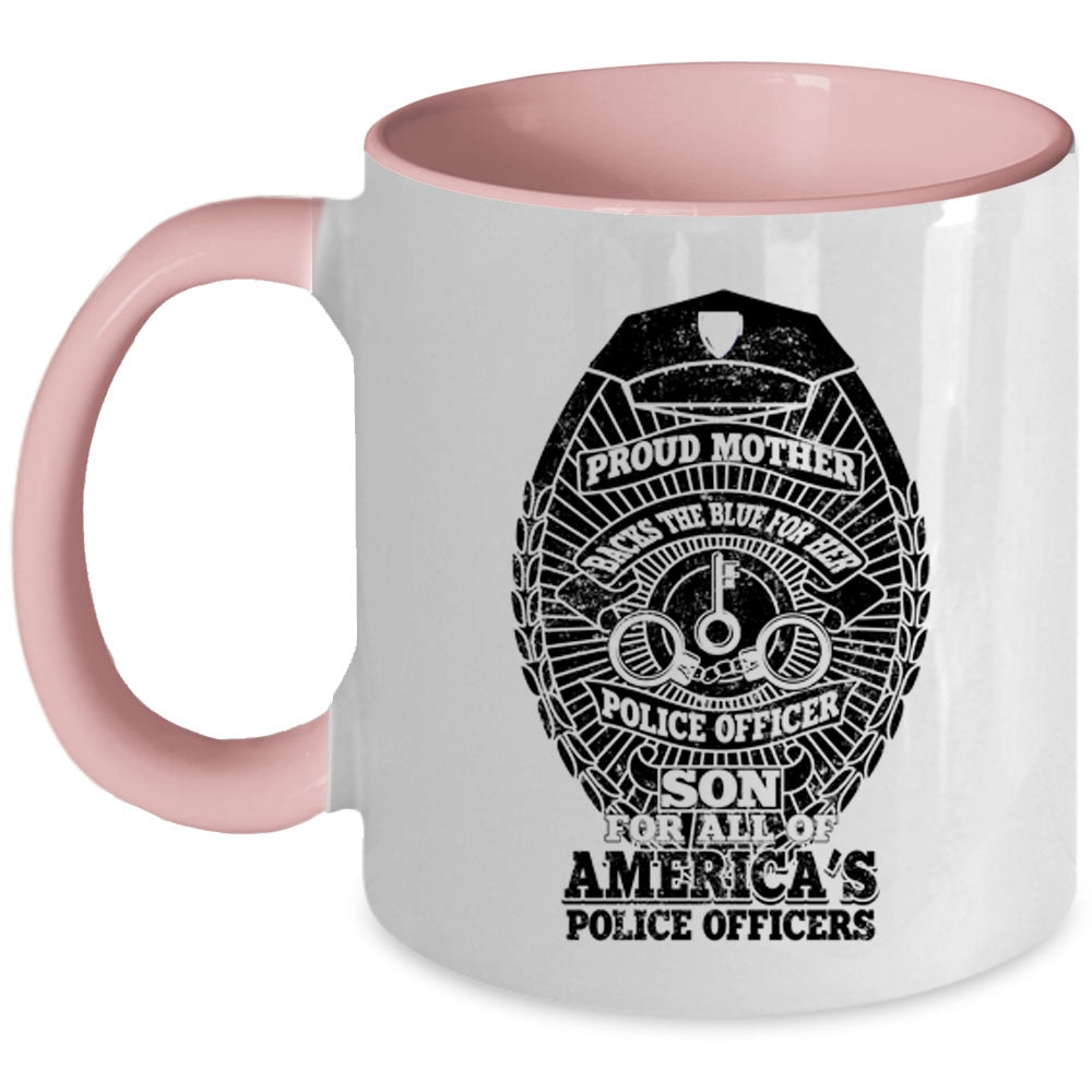American's Police Officers Coffee Mug, Proud Mother Backs The Blue Accent Mug