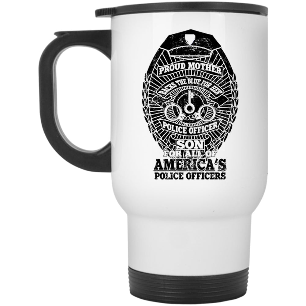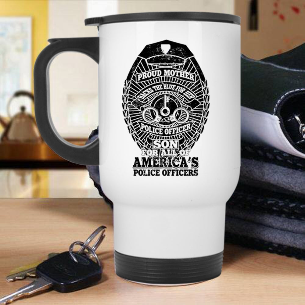 American's Police Officers Travel Mug, Proud Mother Backs The Blue Mug