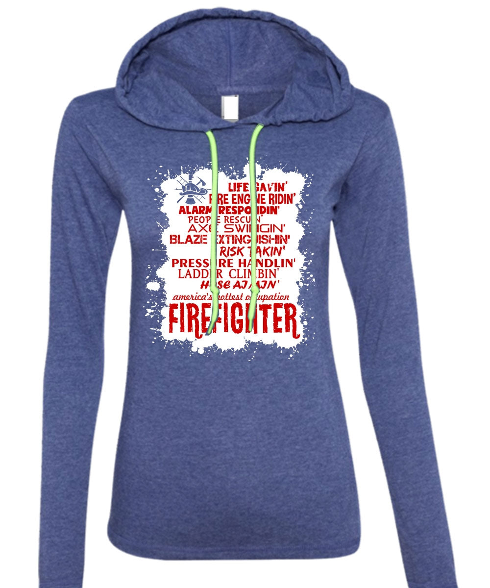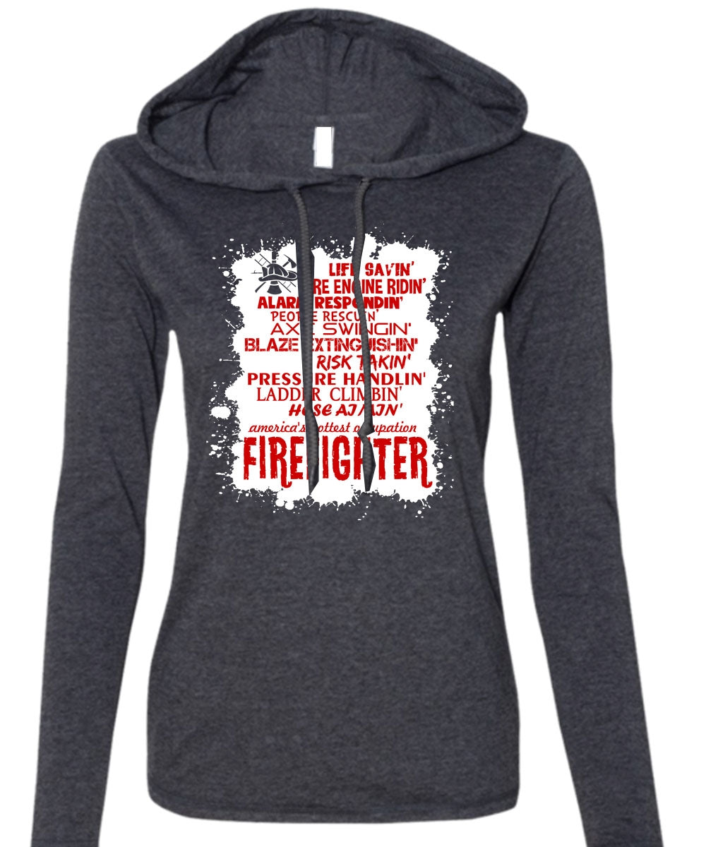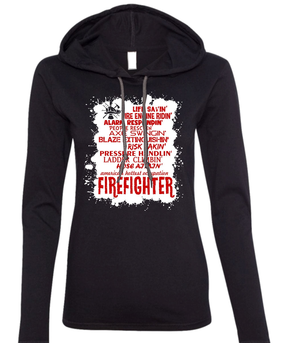 America's Hottest Occupation Firefighter T Shirt, Being A Firefighter T Shirt (Anvil Ladies Ringspun Hooded)