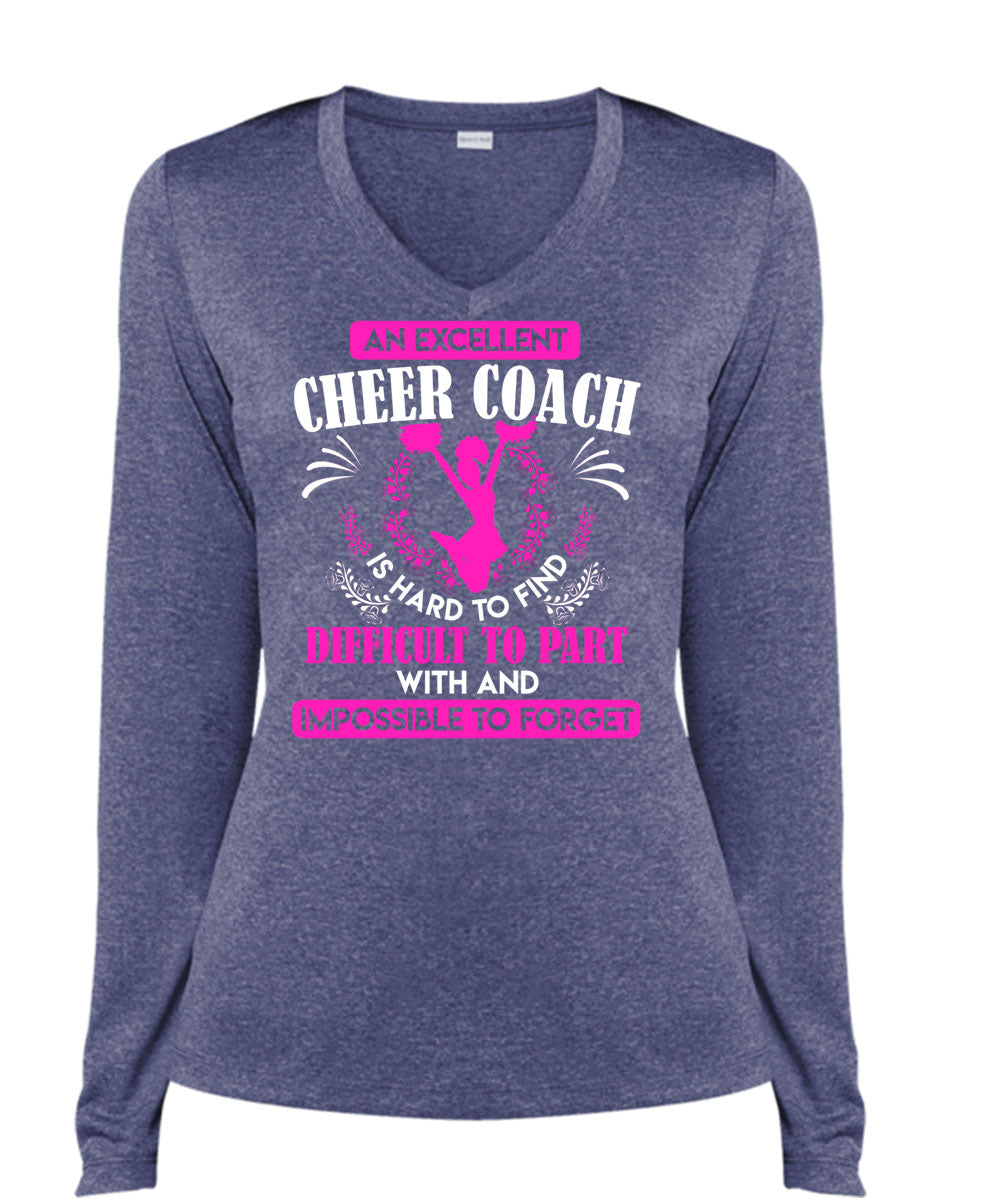 An Excellent Cheer Coach Is Hard To Find Difficult T Shirt, I Love Cheer Coach T Shirt, Cool Shirt (Ladies LS Heather V-Neck)