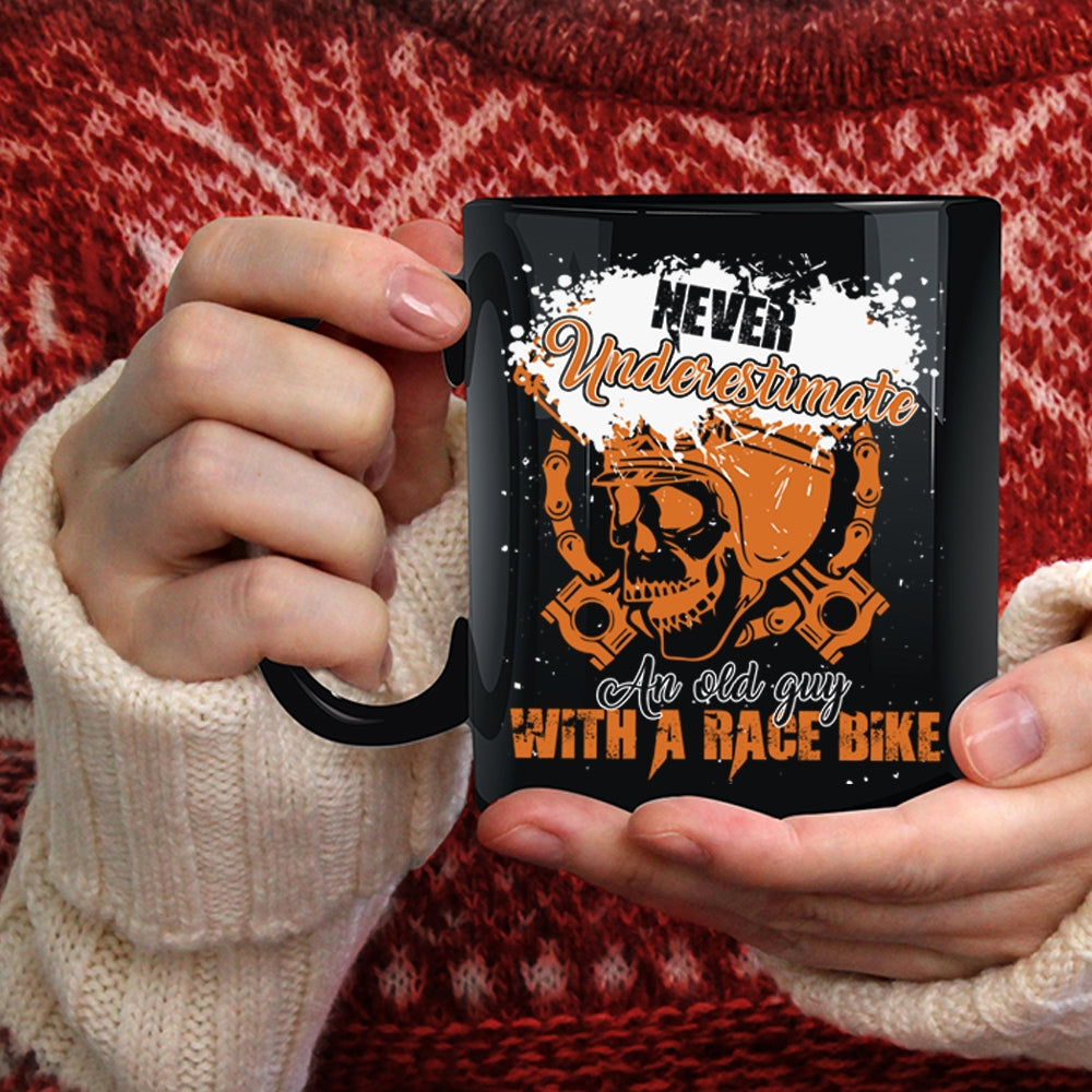 An Old Guy With A Race Bike Coffee Mug, Awesome Race Biker Coffee Cup