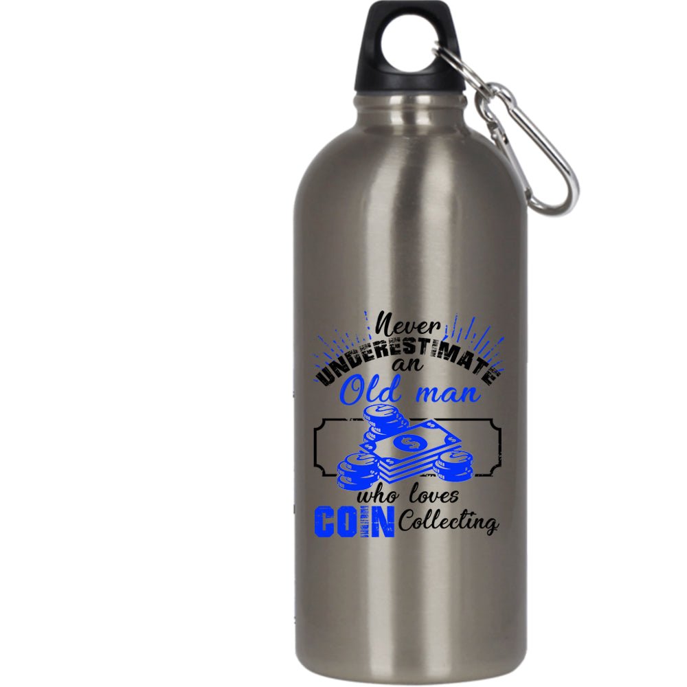 An Old Man Loves Coin Collecting 20 oz Stainless Steel Bottle,Cute Grandpas Outdoor Sports Water Bottle