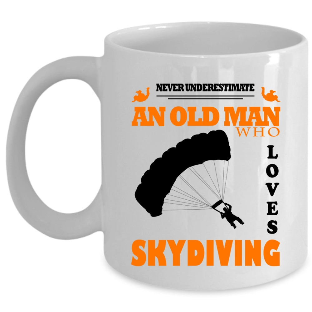 An Old Man Loves Skydiving Cup, Gift For Grandfather Mug (Coffee Mug - White)