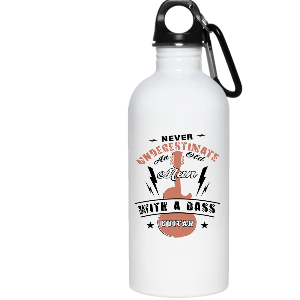 An Old Man With A Bass Guitar 20 oz Stainless Steel Bottle,Cool Grandpa Outdoor Sports Water Bottle