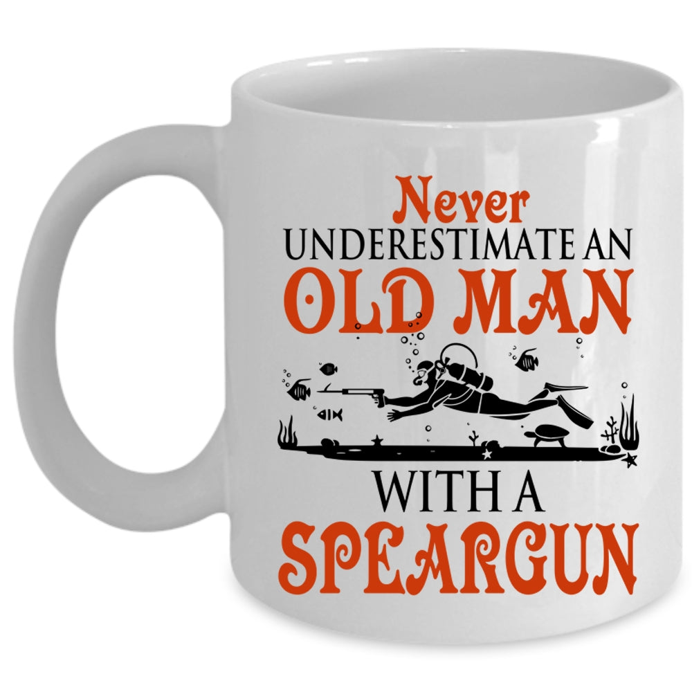 An Old Man With A Speargun Mug, Awesome Grandpas Cup (Coffee Mug - White)