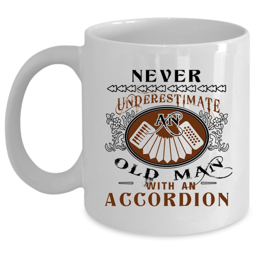An Old Man With An Accordion Mug, Gift For Grandpas Cup (Coffee Mug - White)