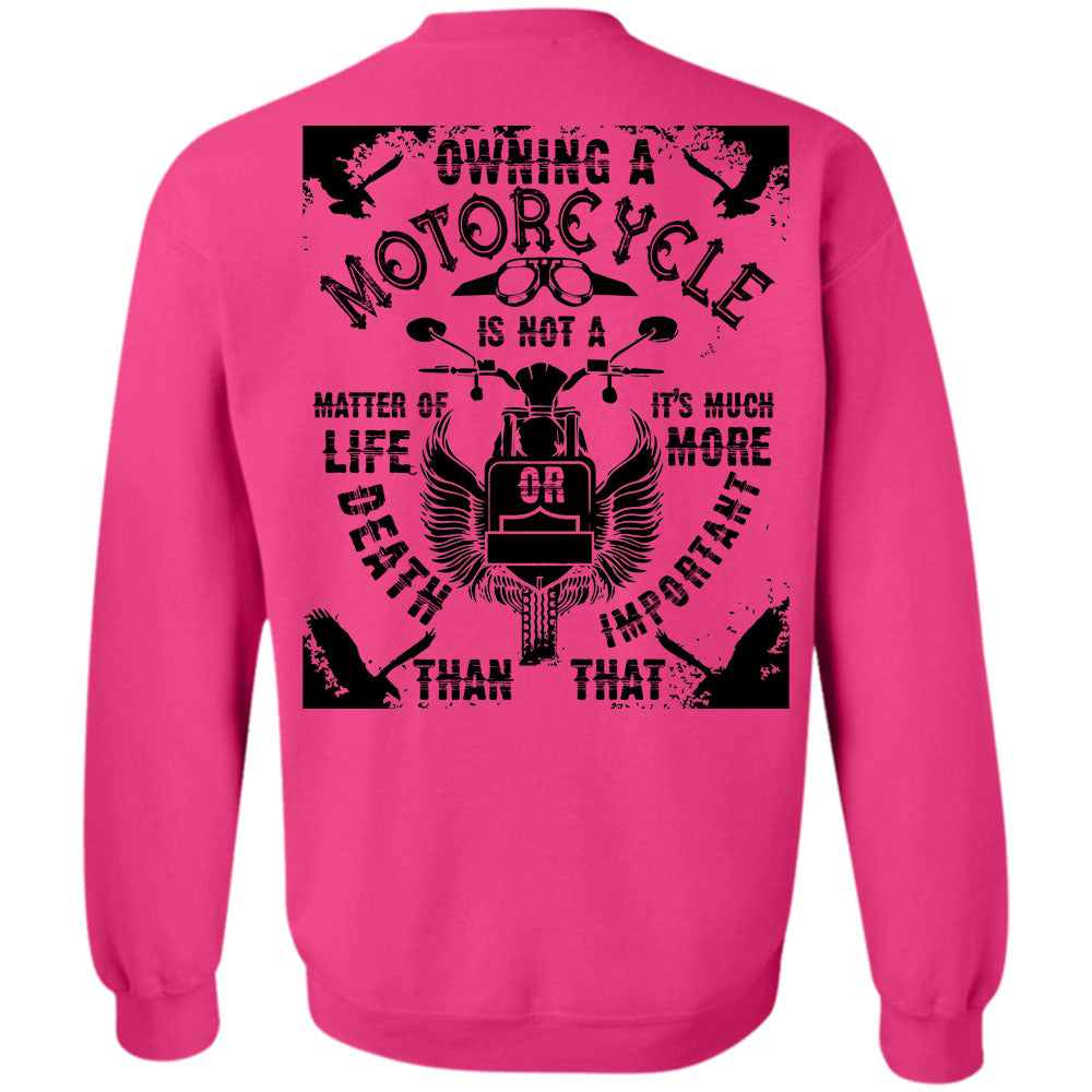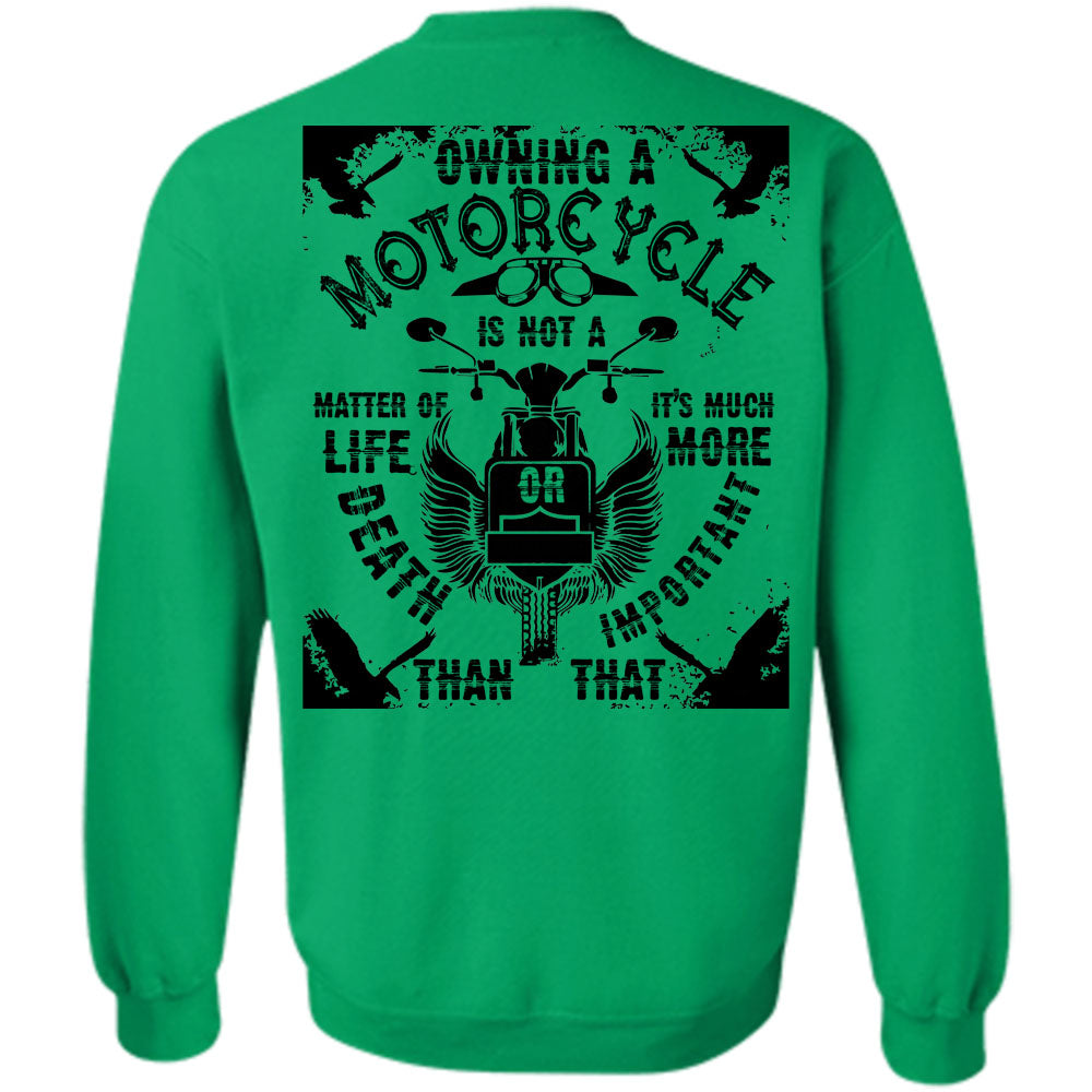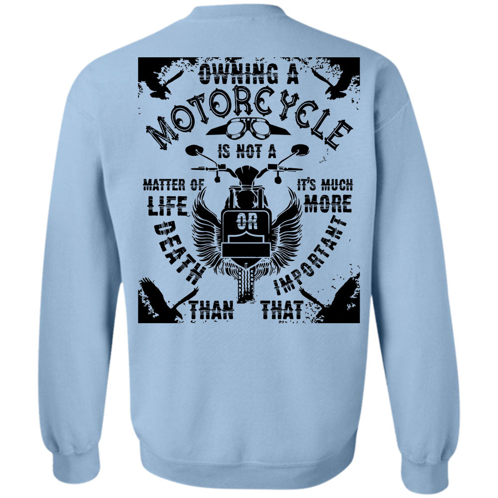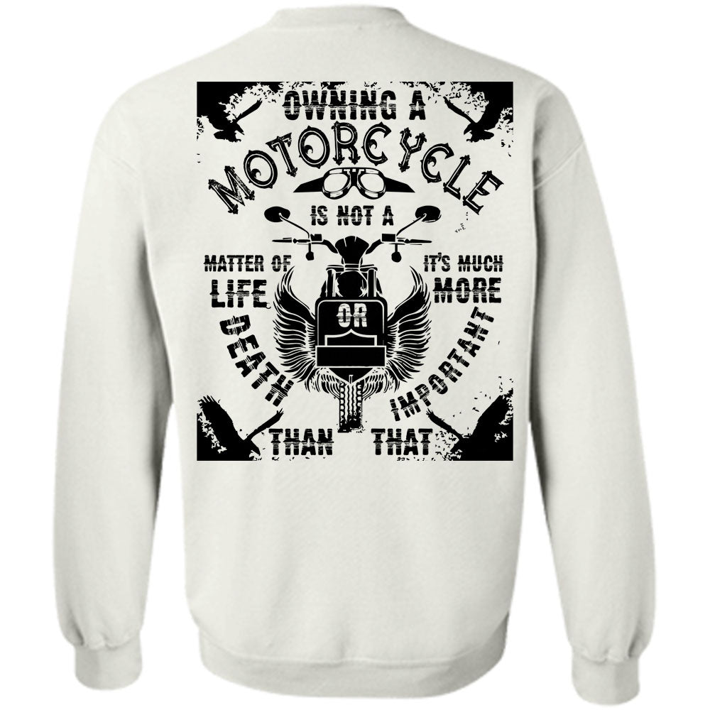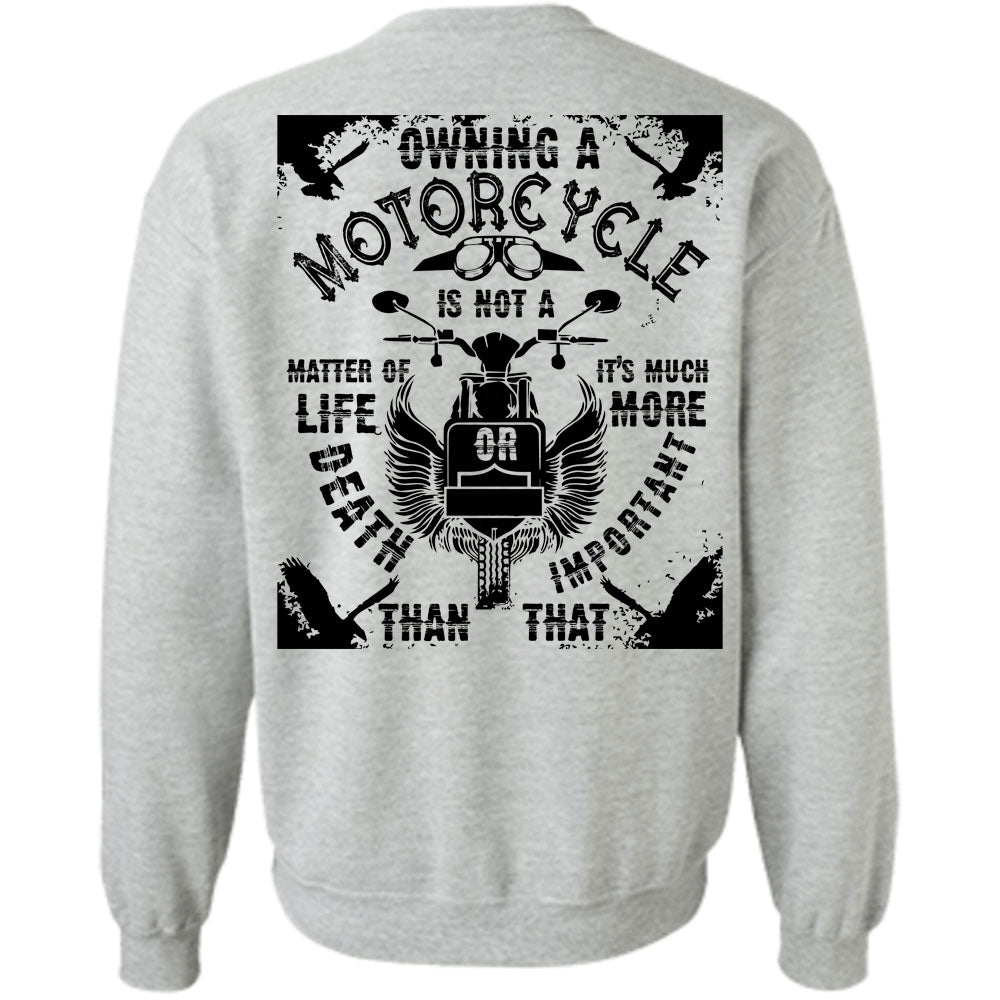 Being A Biker T Shirt, Owning A Motorcycle Is Not A Matter Of Life Or Death Sweatshirt