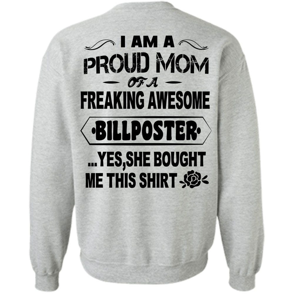 Being A Billposter T Shirt, I Am A Proud Mom Of A Freaking Awesome Billposter Sweatshirt