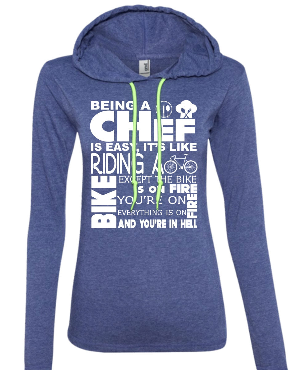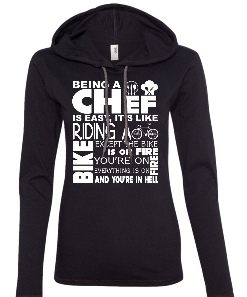 Being A Chef Is Easy T Shirt, It's Like Riding A Except The Bike Is On Fire T Shirt (Anvil Ladies Ringspun Hooded)