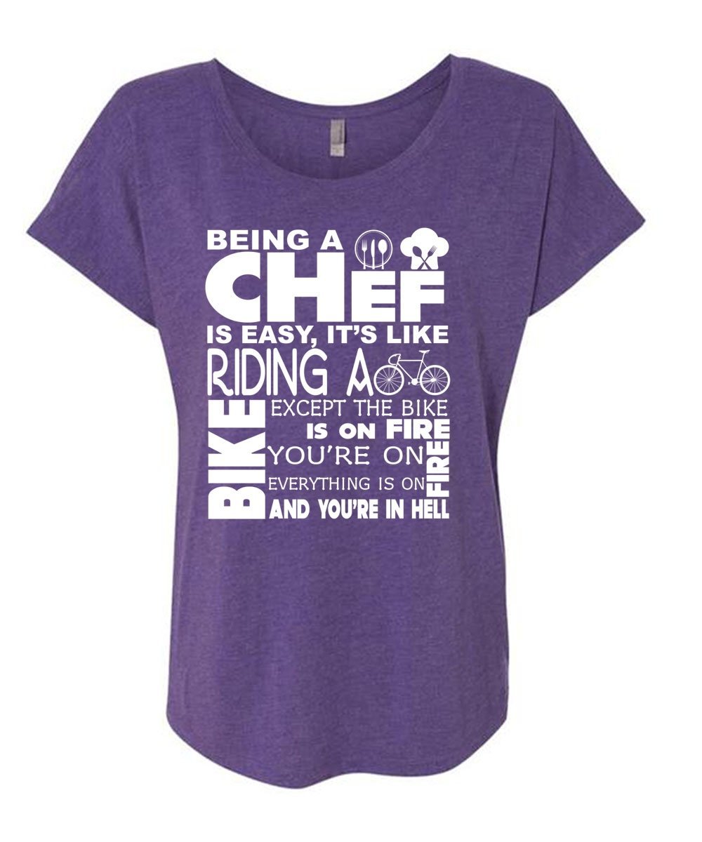 Being A Chef Is Easy T Shirt, It's Like Riding A Except The Bike Is On Fire T Shirt (Ladies' Triblend Dolman Sleeve)