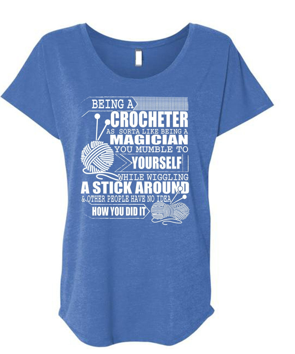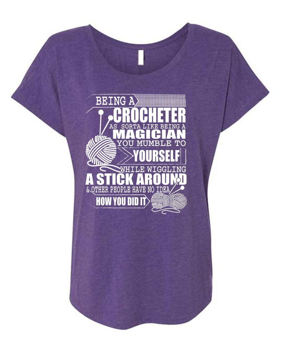 Being A Crocheter T Shirt, Being A Magician T Shirt, Cool Shirt (Ladies' Triblend Dolman Sleeve)
