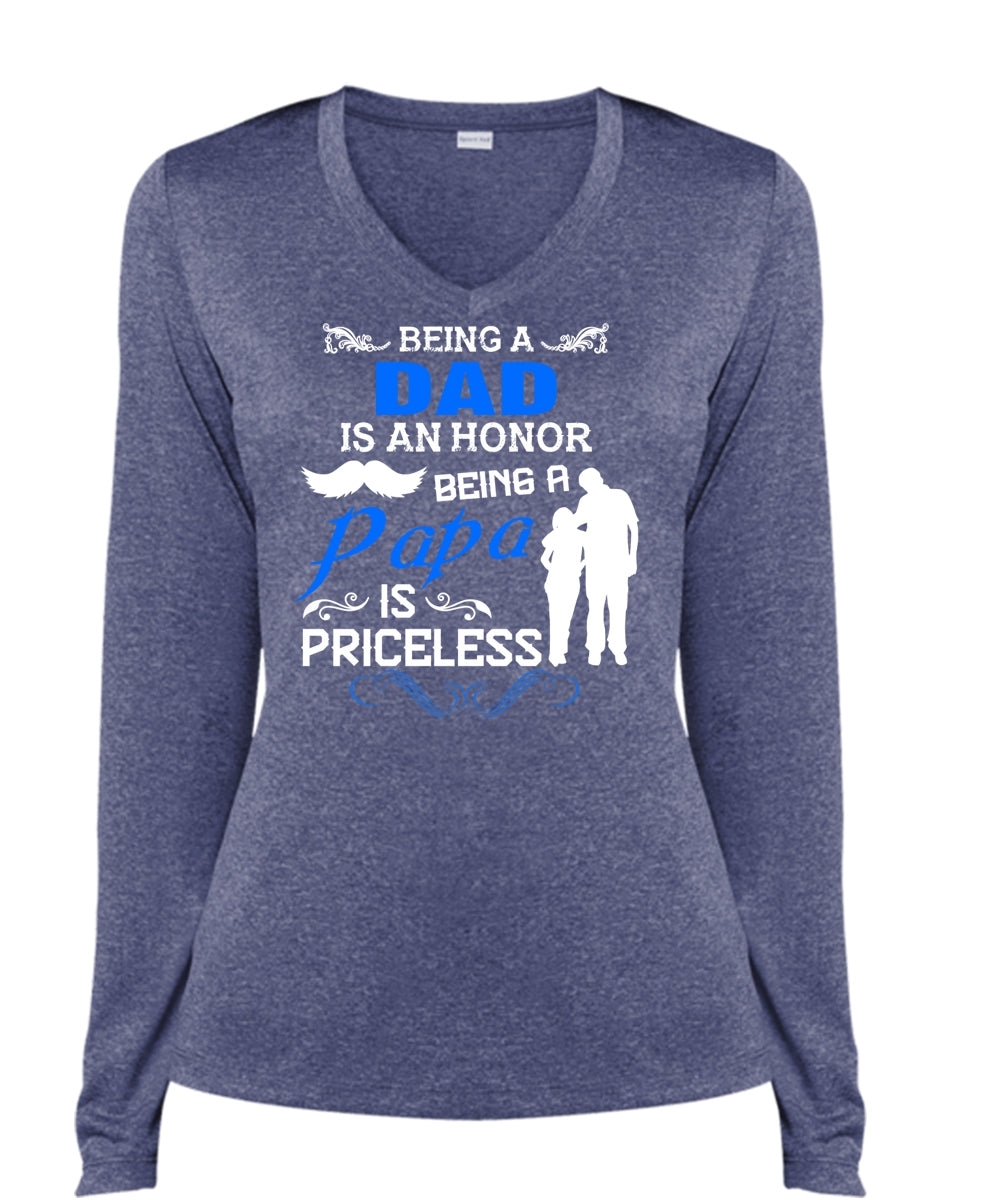 Being A Dad Is An Honor T Shirt, Being A Papa Is Priceless T Shirt (Ladies LS Heather V-Neck)