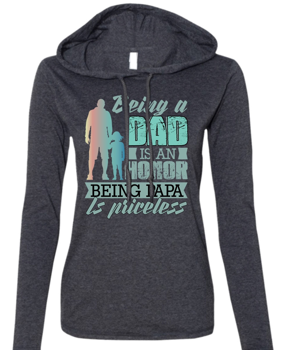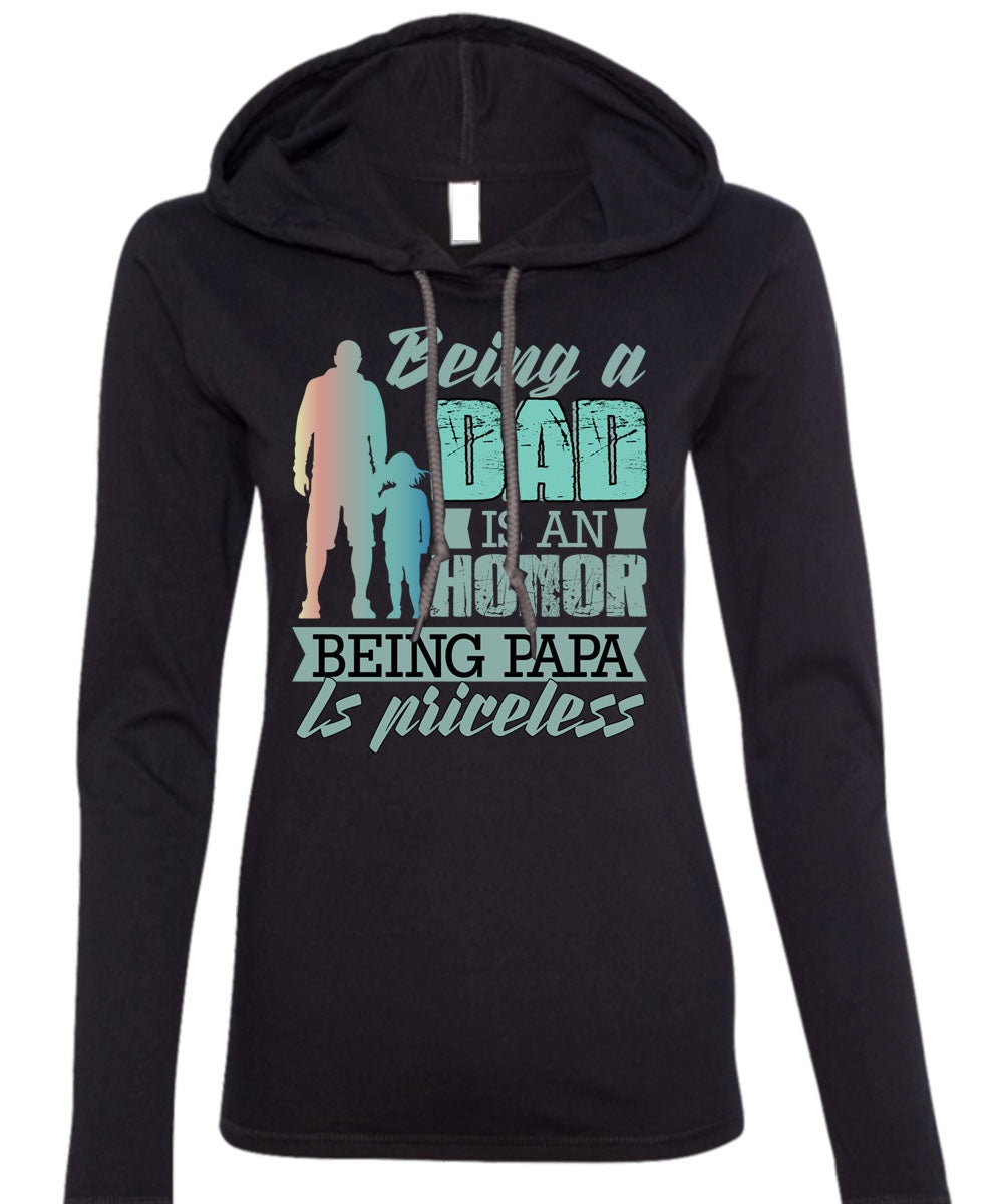 Being A Dad Is An Honor T Shirt, Being Papa Is Priceless T Shirt (Anvil Ladies Ringspun Hooded)