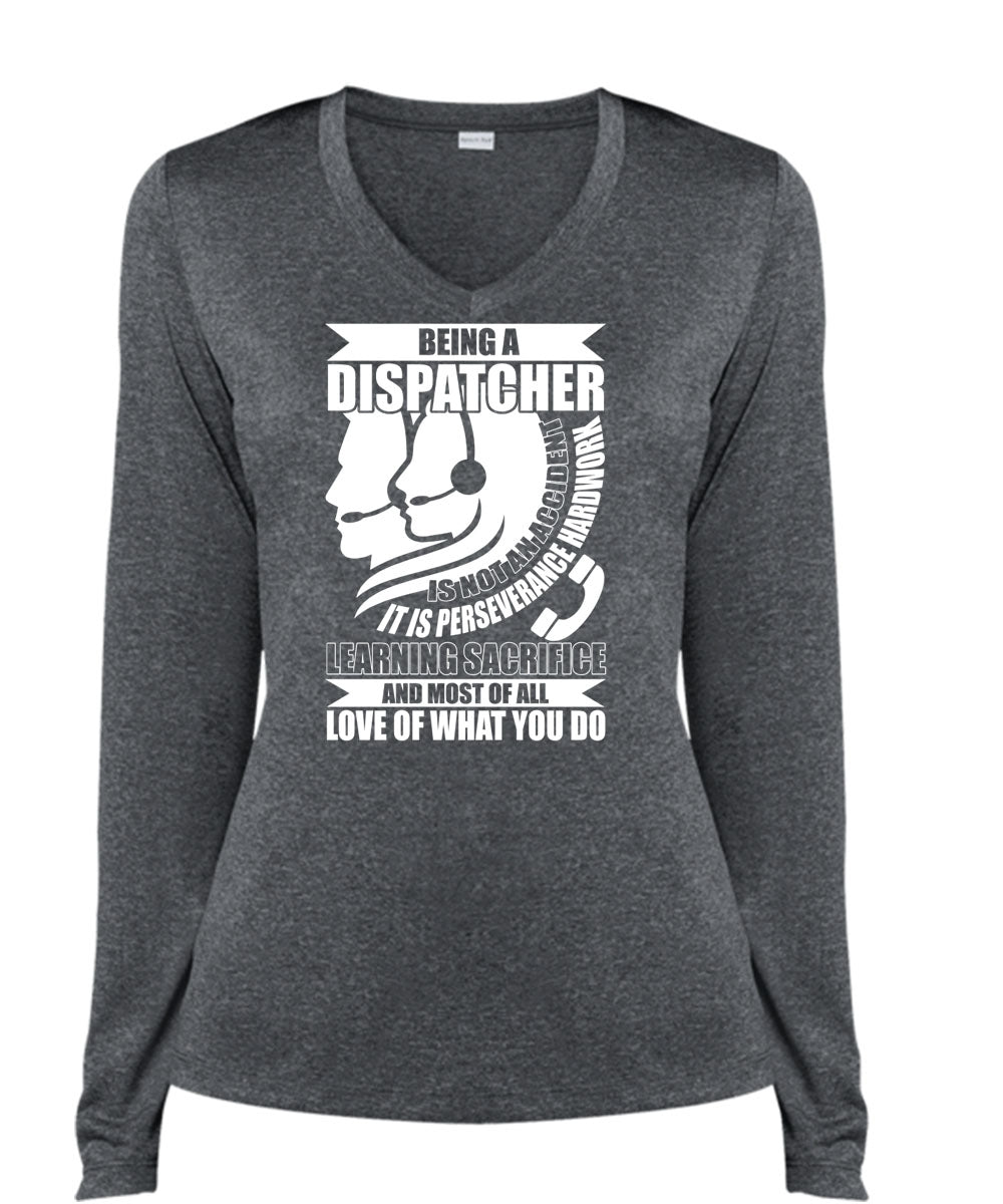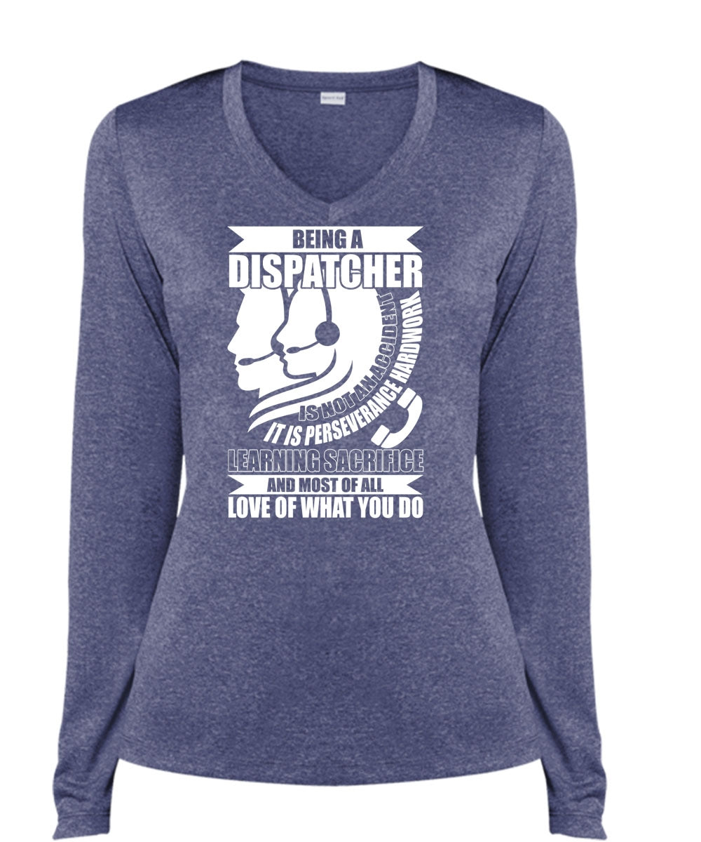 Being A Dispatcher Is Not An Accident T Shirt, I'm A Dispatcher T Shirt, Cool Shirt (Ladies LS Heather V-Neck)